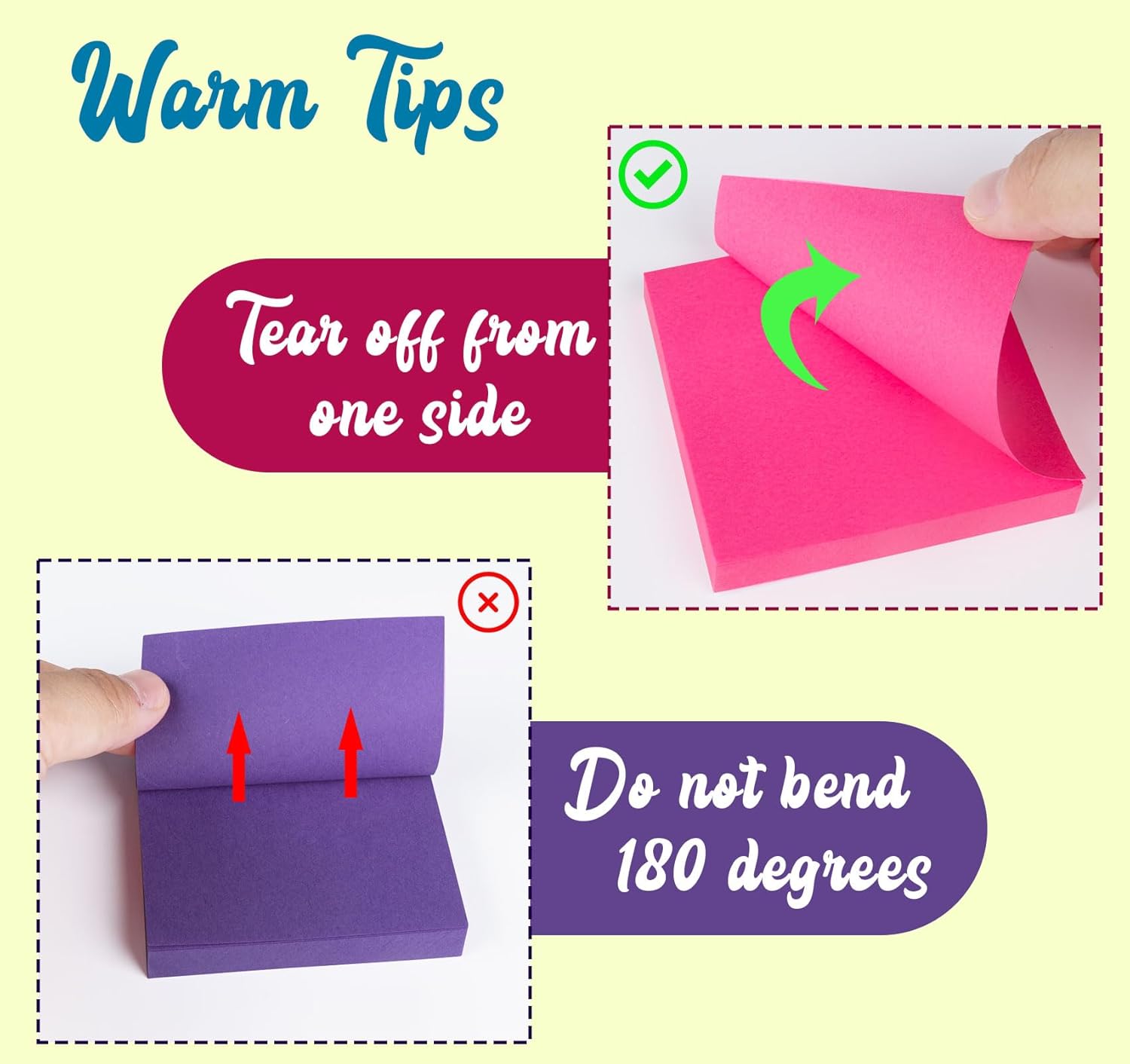 • 【Bright Colors】Our sticky notes which contain 6 vivid colors: Blue, Green, Bright Yellow, Purple, Pink, Red, make it more eye-catching and always remind you of important things.