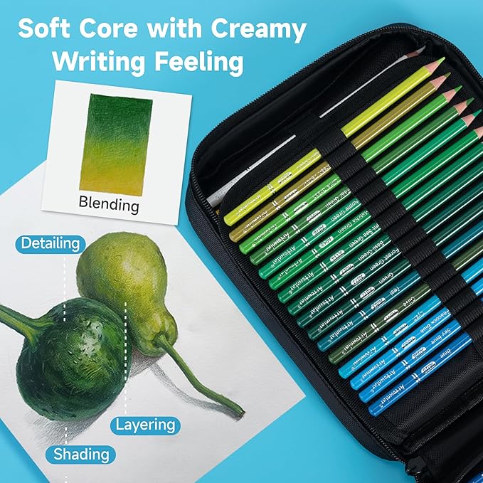 • Portable Travel Zipper Case & Perfect Gift: Art pencil storage case has 72 slots for every coloring pencil to keep organized and protected. Ideal gift box for advanced artists, kids, teens, children, art students, teenagers, beginners, starters, boys , girls professionals or colorists on Christmas, Thanksgiving and Birthdays.