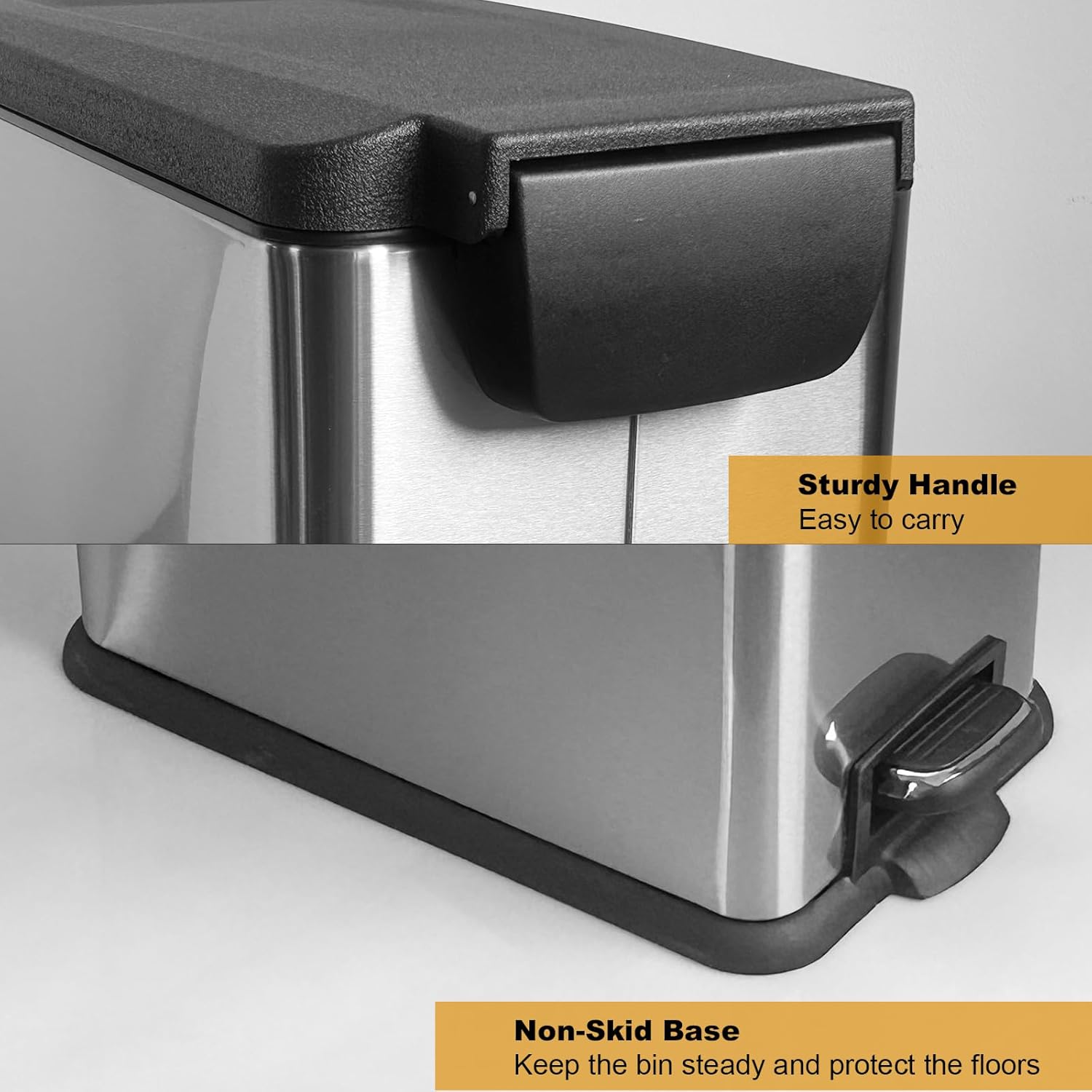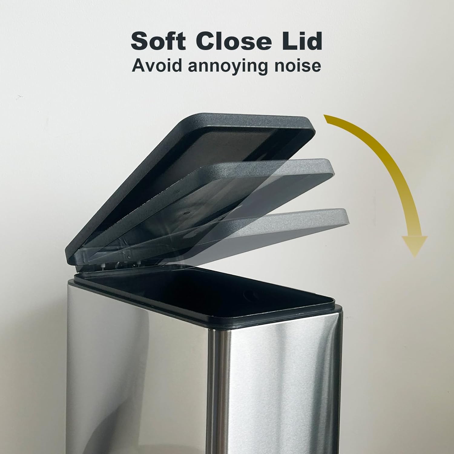 • [Silent Close Lid] Our slim kitchen bin use a soft close component,the garbage bin does not close suddenly, but slowly and quietly.