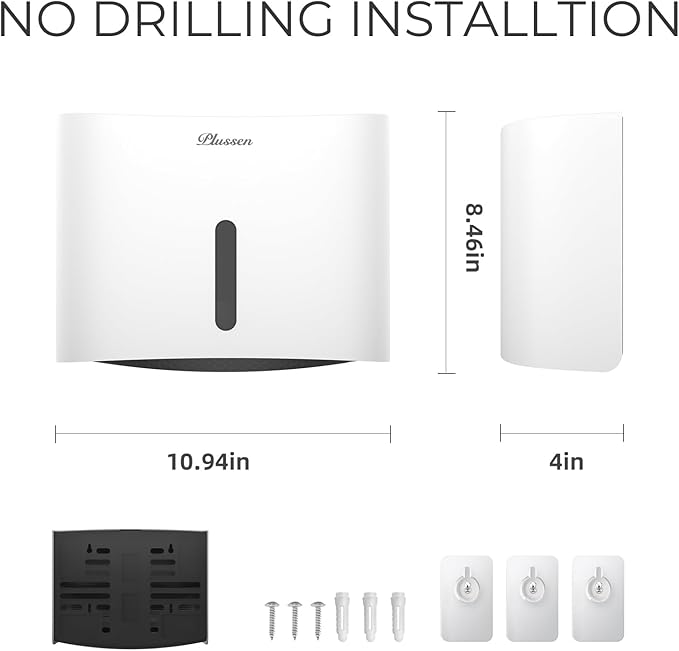 Paper Towel Dispenser Wall Mount, Adhesive No Drilling Multifold Trifold Cfold Commercial Hand Towel Dispenser,White-PN6015