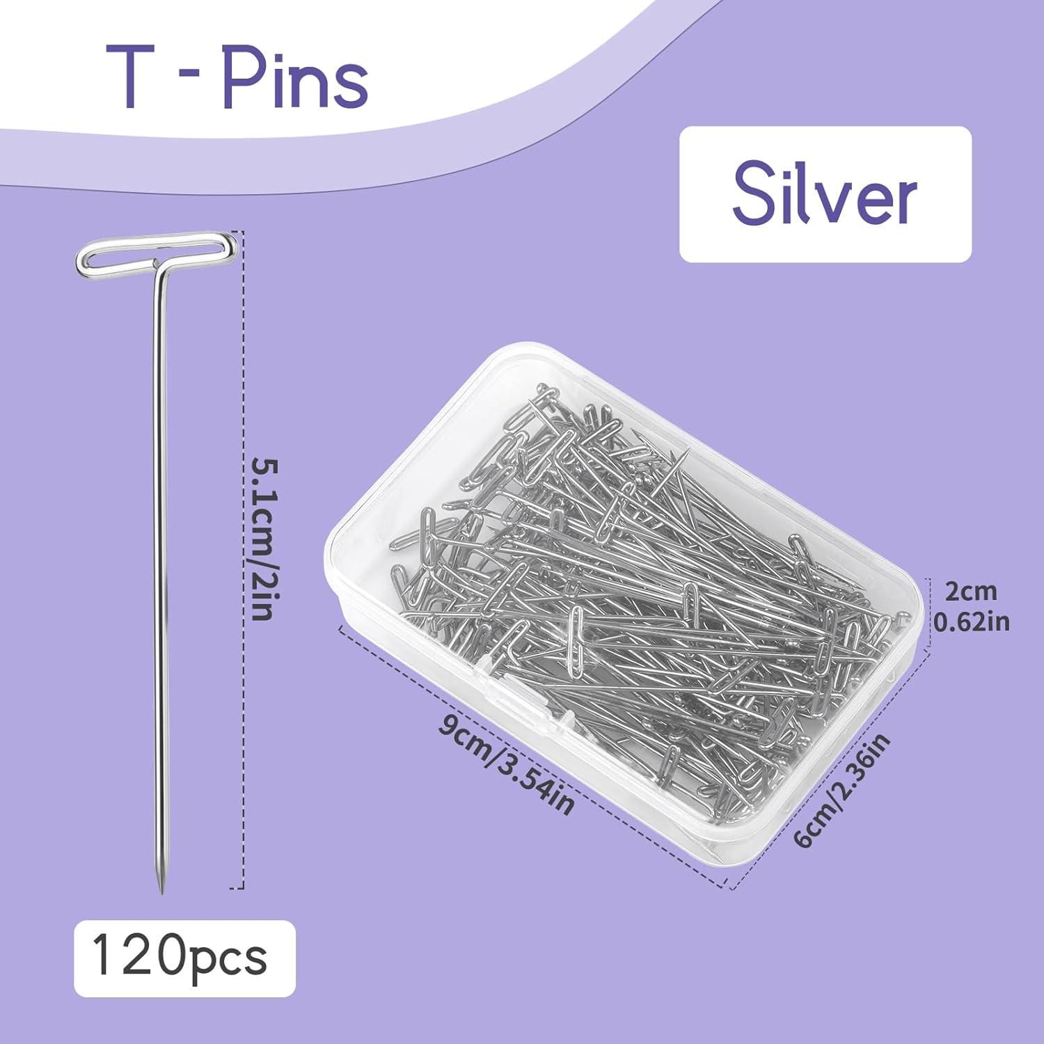 120 Pcs 2 Inch T-Shape Sewing Pins with Plastic Clear Box - Stainless Steel T-Pins for Wig Heads & Knitting Sewing Craft (51mm/2inch)