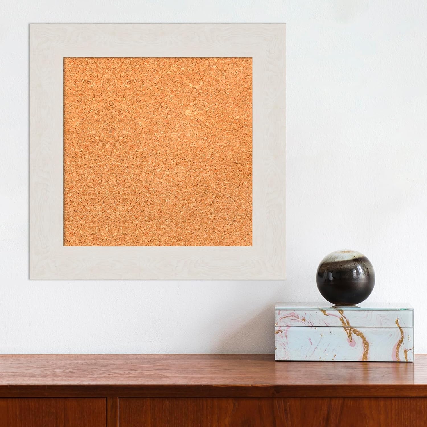 Amanti Art Natural Cork Board for Wall, 15x15 Vision Board with White Frame, X-Small Corkboard Office Decor for Home Organization, Country Rustic Corkboard Pinboard to Display Items for Home