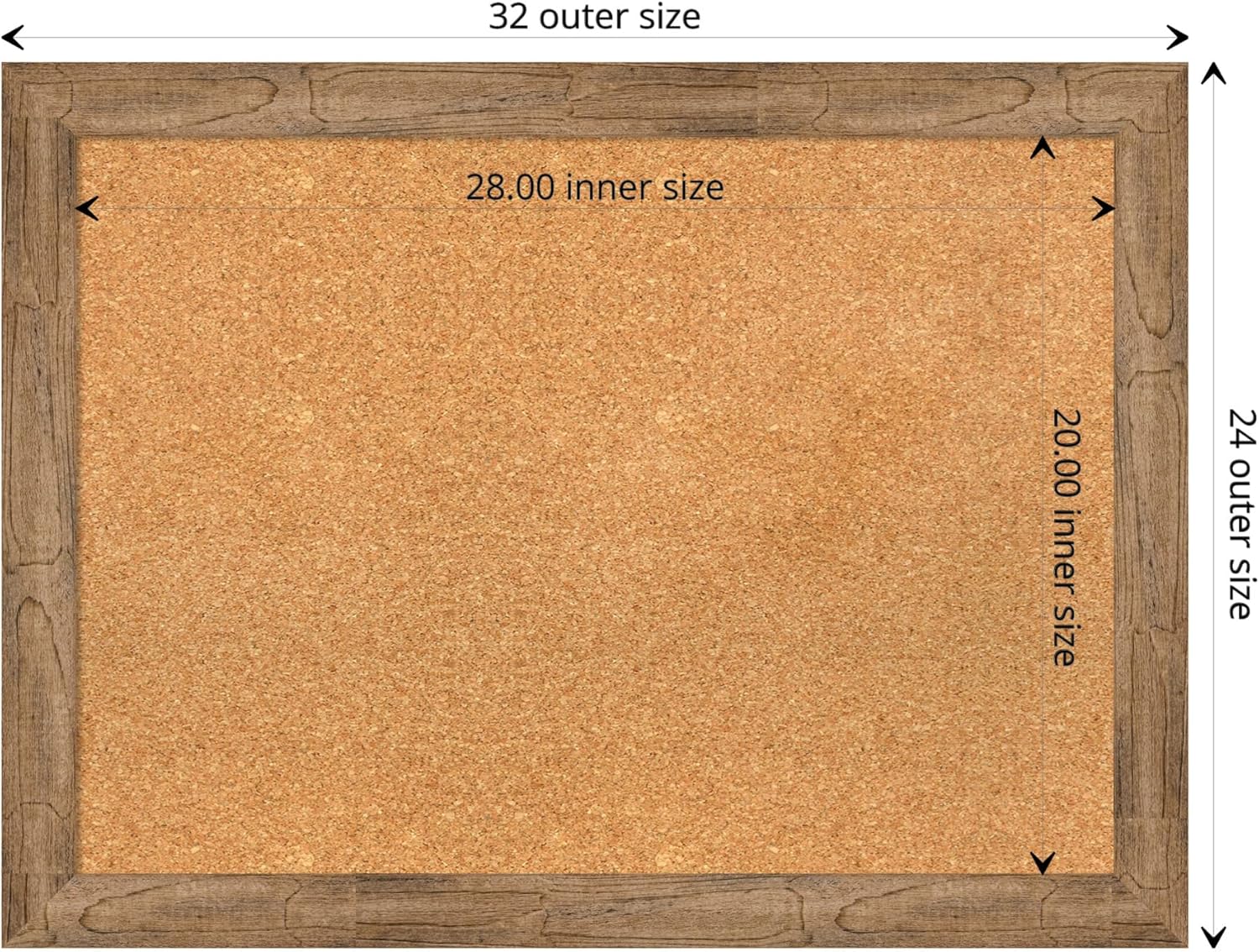 • DIMENSIONS: The overall size of this framed corkboard measures 32 in. x 24 in., including the frame. Its functional cork board area measures 28 in. x 20 in.