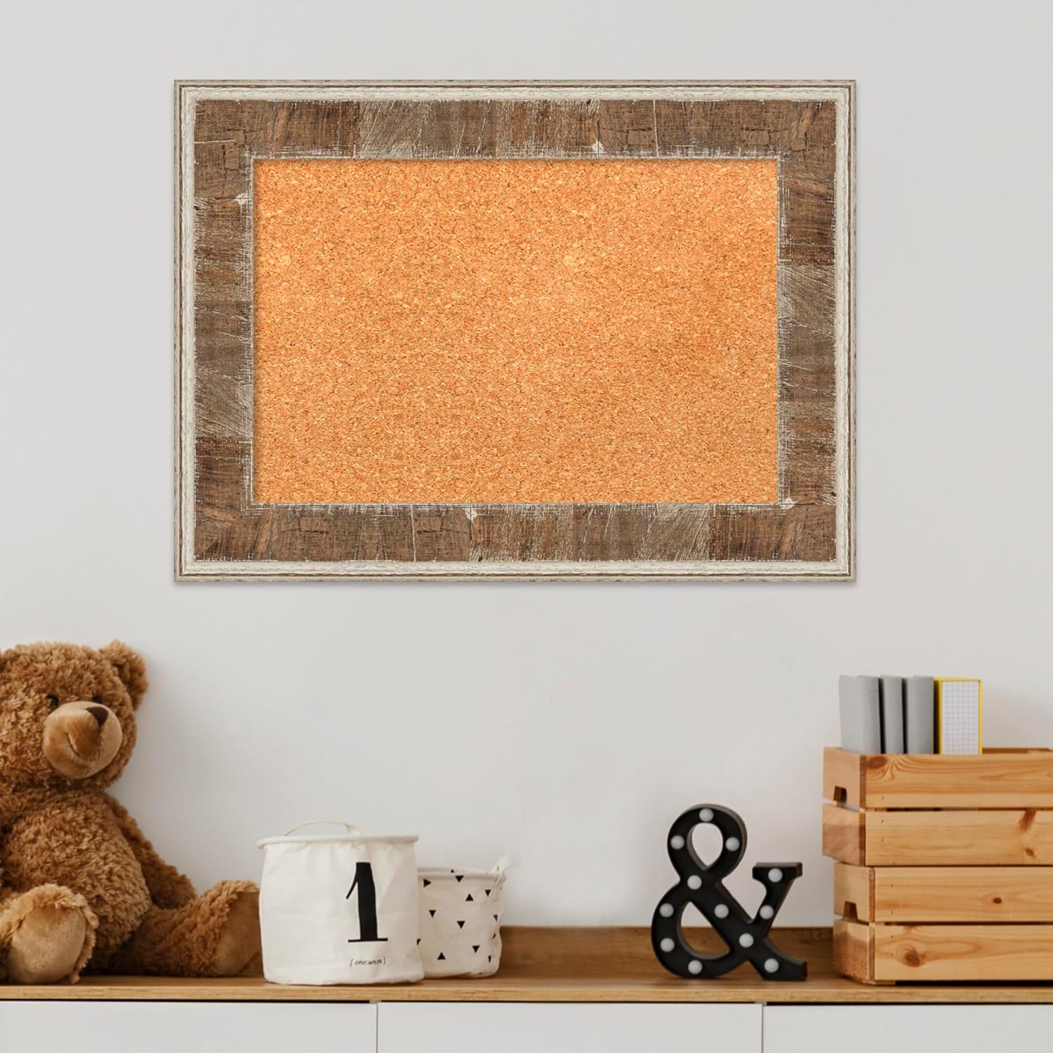 Amanti Art Natural Cork Board for Wall, 17x23 Vision Board with Brown Wood Frame, Small Corkboard Office Decor for Home Organization, Country Rustic Corkboard Pinboard to Display Items for Home
