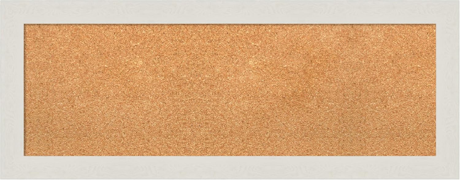 Amanti Art Natural Cork Board for Wall, 15x39 Vision Board with White Frame, Medium Corkboard Office Decor for Home Organization, Country Rustic Corkboard Pinboard to Display Items for Home