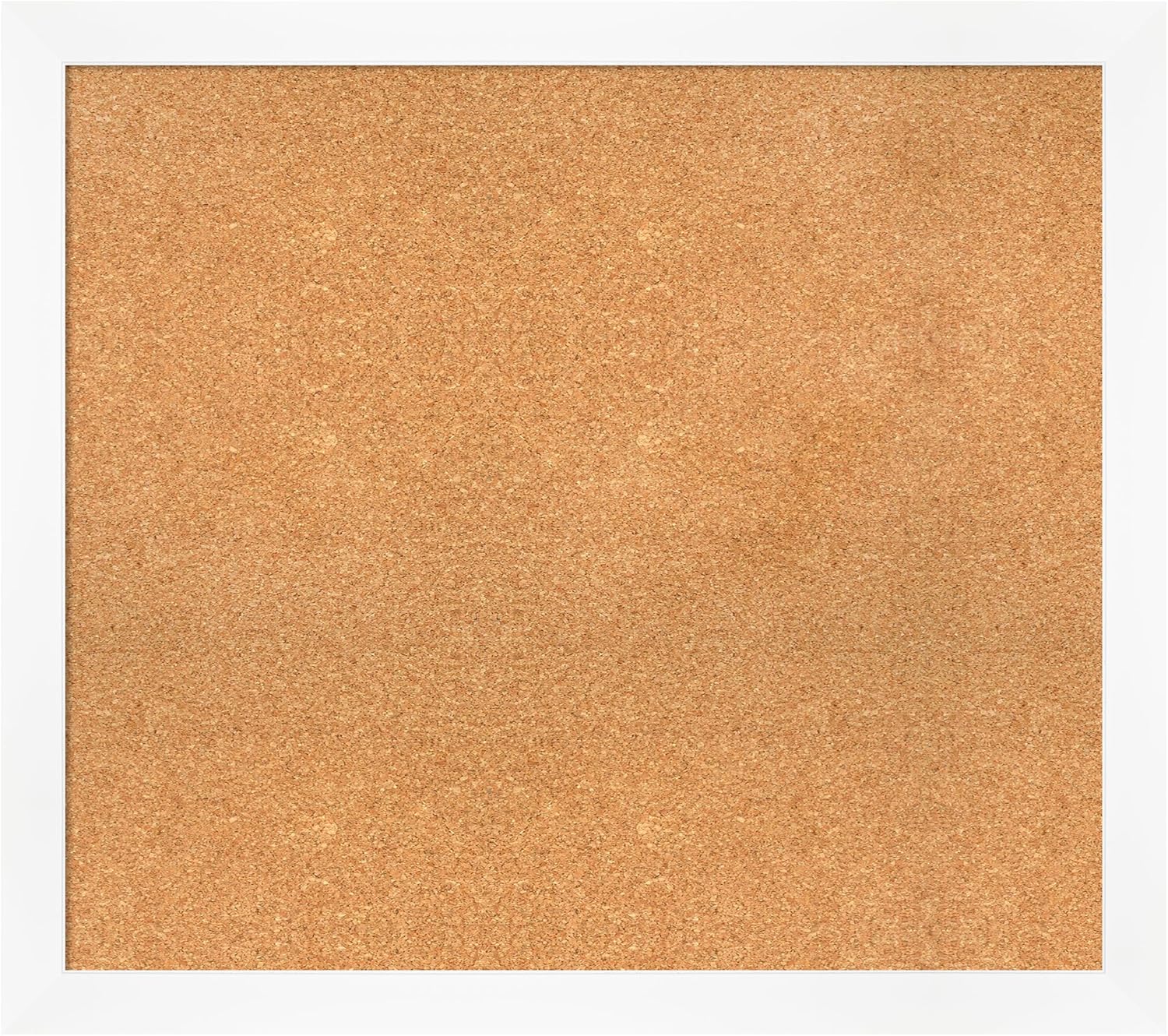 Amanti Art Natural Cork Board for Wall, 31x35 Vision Board with White Frame, Large Corkboard Office Decor for Home Organization, Modern Corkboard Pinboard to Display Items for Home Organization in