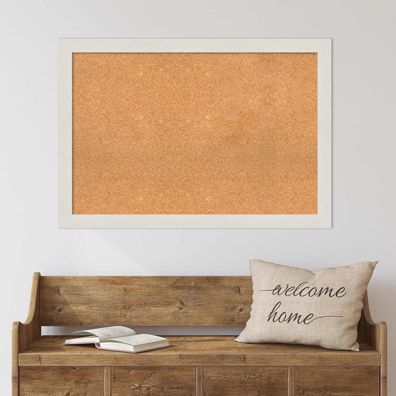 Amanti Art Natural Cork Board for Wall, 27x39 Vision Board with White Frame, Large Corkboard Office Decor for Home Organization, Country Rustic Corkboard Pinboard to Display Items for Home