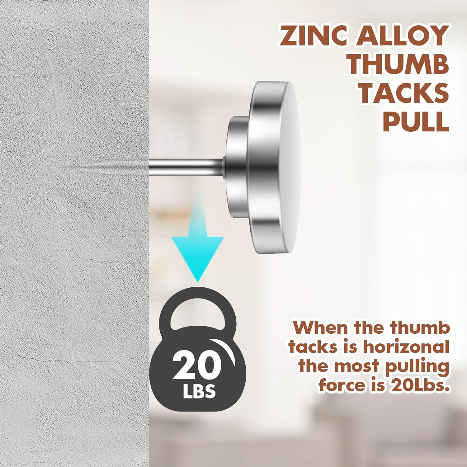 • 【Durable Construction】The tacs measure approx. 0.6 inch in total length, and approx. 0.4 inch in diameter and they are made of zinc alloy, not easy to rust, are hard to deform, break, or fall off, and can hold up to 20 lbs. Lightweight but toughly made for daily use, great for both residential and commercial settings.