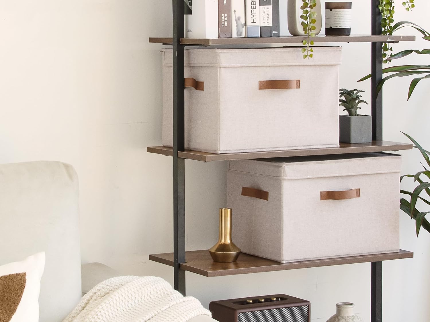 StorageWorks Fabric Storage Bins with Lid, Decorative Storage Boxes for Shelves, Stackable Closet Organizer Basket with Handles, Jumbo, Brown and Beige, 2-Pack
