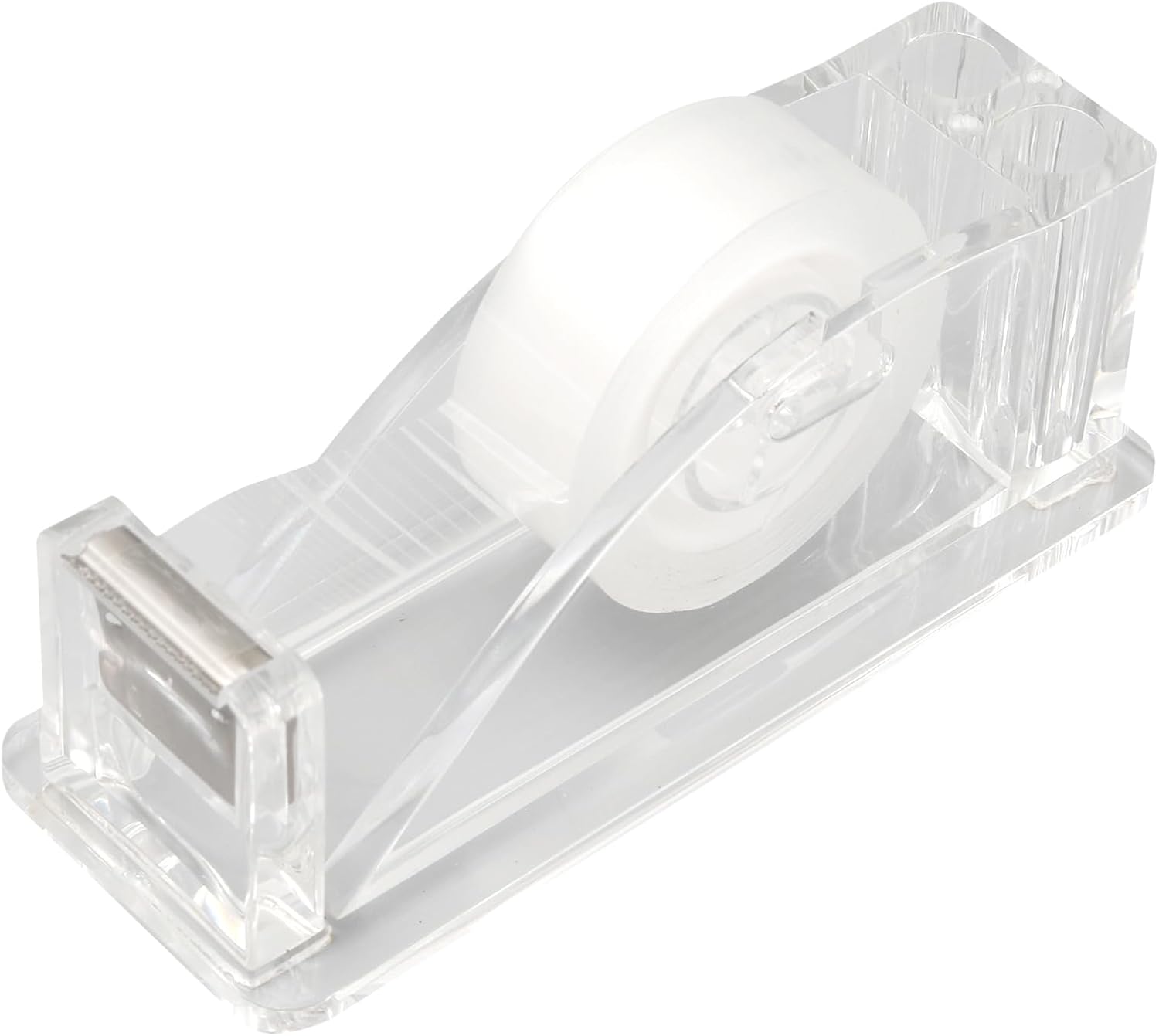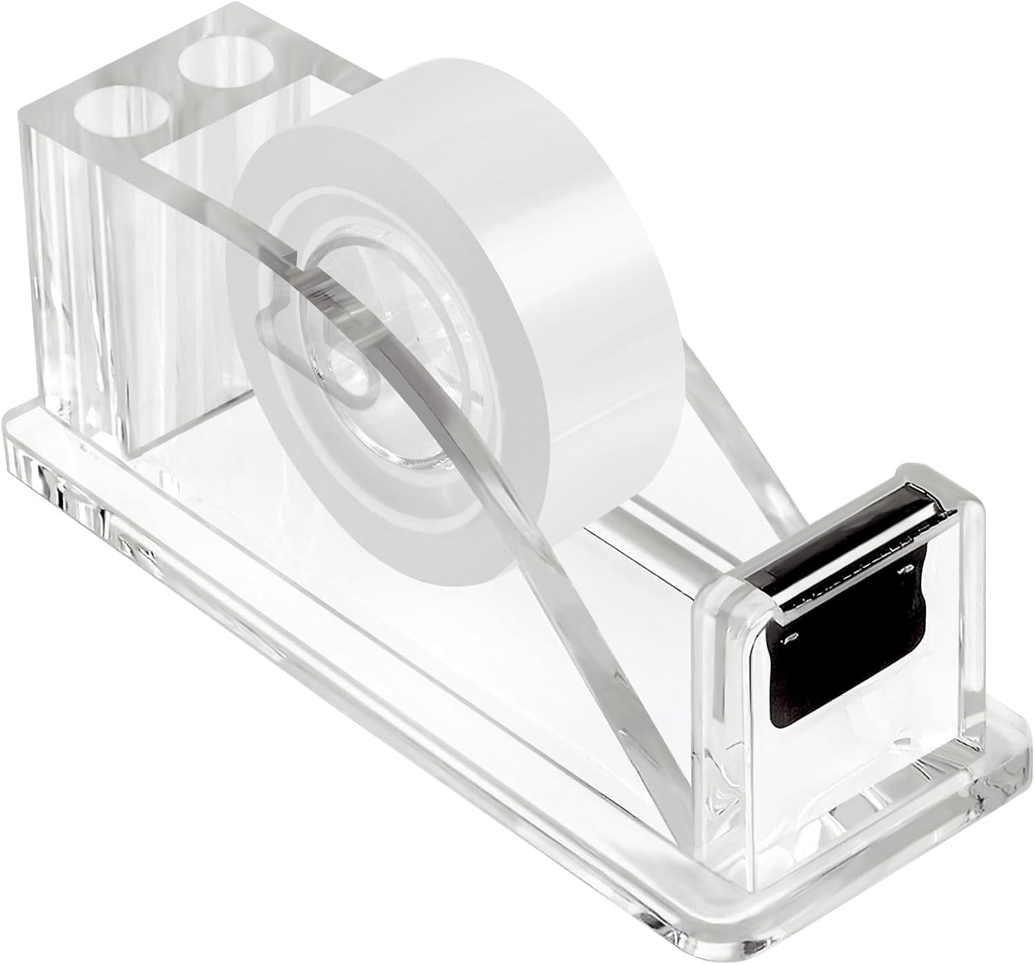• Sleek and Modern Design: This tape dispenser features a contemporary design, combining ultra-clear acrylic with Pen container. It adds a stylish and modern touch to any office or desktop