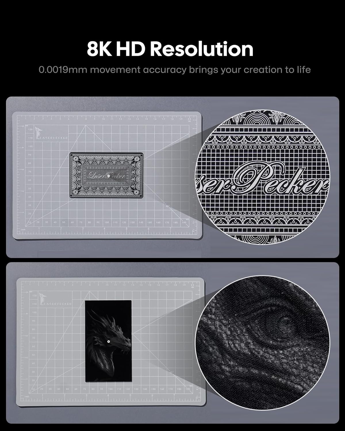 • 8K Ultra-Precision Like Industrial Machines: 8K(1270 DPI) Resolution Captures Micro Text & QR Codes – Engrave Fonts on Rings with 3X Less Scrap Rate Than 4K Competitors.