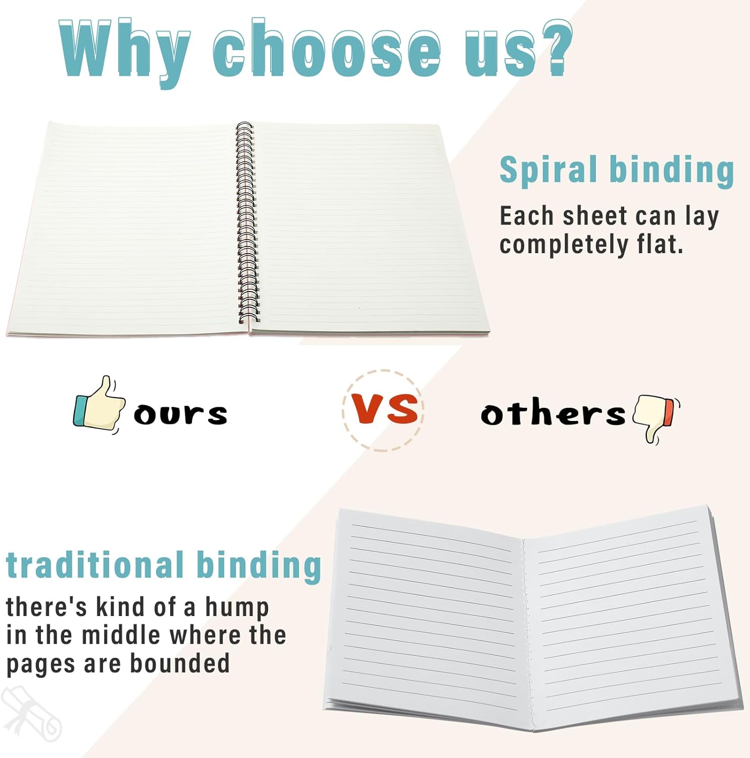 • Smooth to Write: each spiral journal notebook has 60 sheets (120 pages), and each page adopts quality 80gsm white paper, smooth and easy to write, preventing ink infiltrating into the next page, and mild colors can avoid eye fatigue and bring comfortable experience