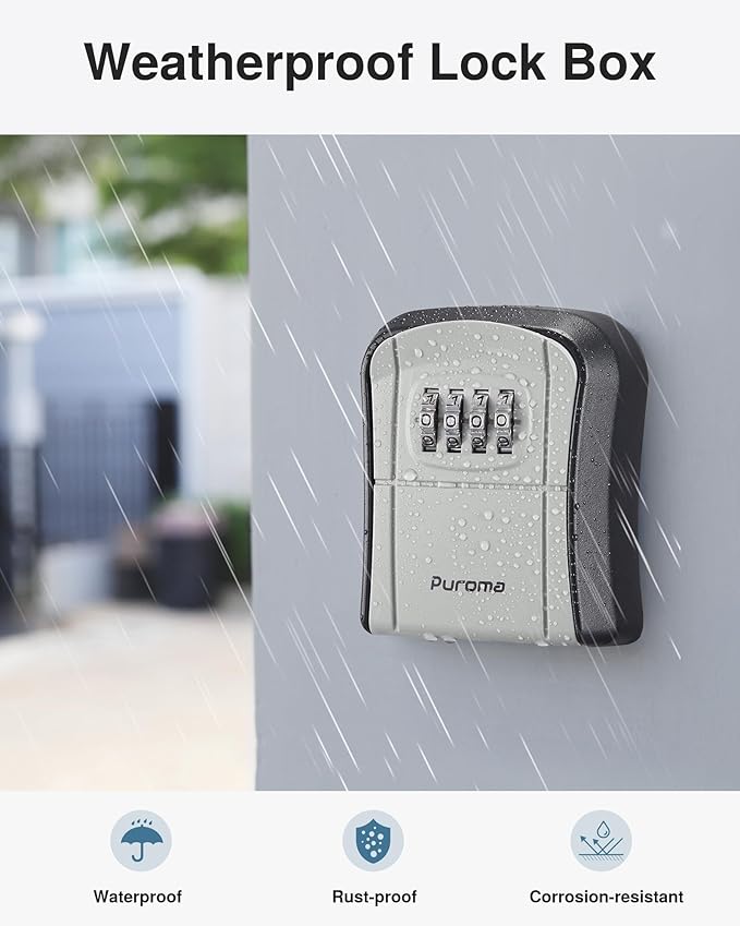 • Sturdy Security Lockbox: Puroma Key storage lock box is made of high-quality aluminum alloy and steel to keep your keys safe. Rustproof, cut-resistant and effective resistance to violent damage caused by hammering, sawing, or prying open.