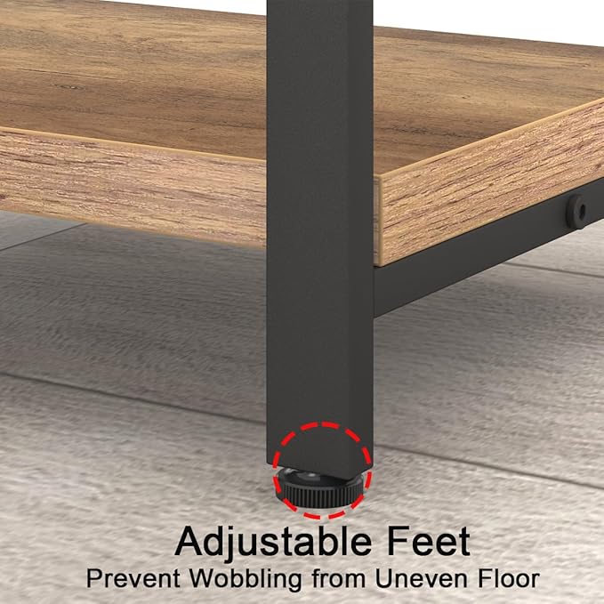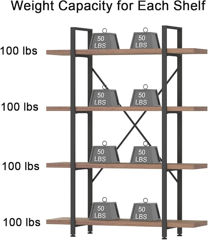 • 【Sturdy Construction】: Crafted from high-quality MDF board and thick steel metal frames, each shelf can support up to 100 pounds, making it a total weight capacity of 400 pounds for the rustic 4 shelf bookcase. Additional X-shaped reinforcement bars provide robust support for this wooden and metal book shelf, ensuring its stability and durability. The adjustable leveling feet on the storage book shelves help eliminate wobbling and prevent floor scratches.