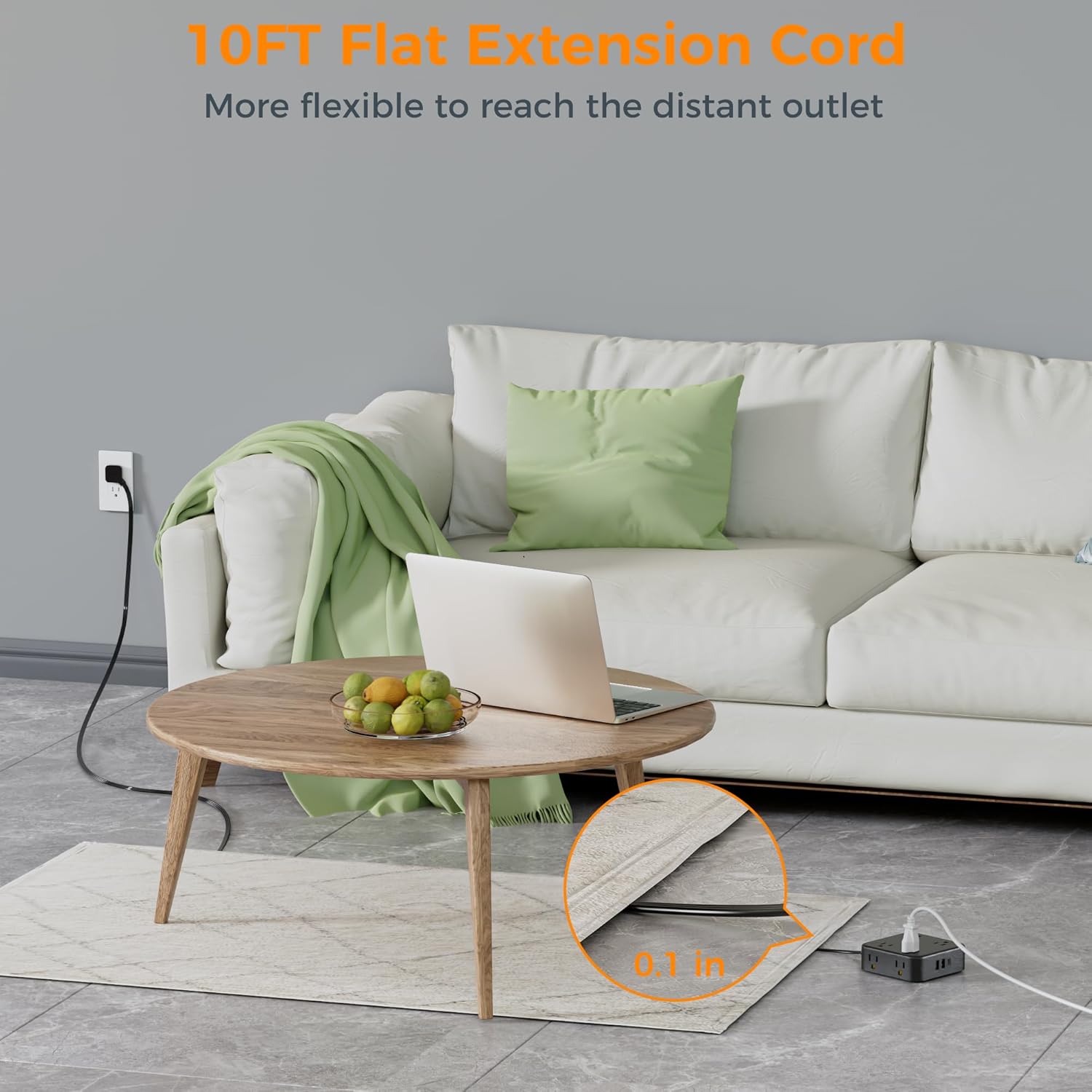 • Flat Plug Power Strip: With only 0.31 inch ultra thin flat plug design design helps you save space and avoid clutter, making it easier to position the power strip in tight spaces