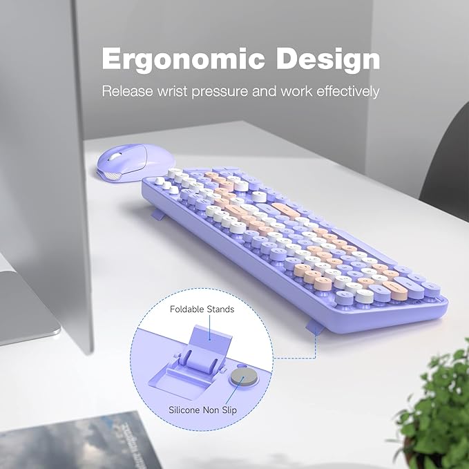 • 【Cute Wireless Keyboard】The inspiration for these cute rounded keys comes from vintage typewriters offering you visual enjoyment and a retro feeling to type. With colorful key caps, make you be distinctive in the office and work full of fun.