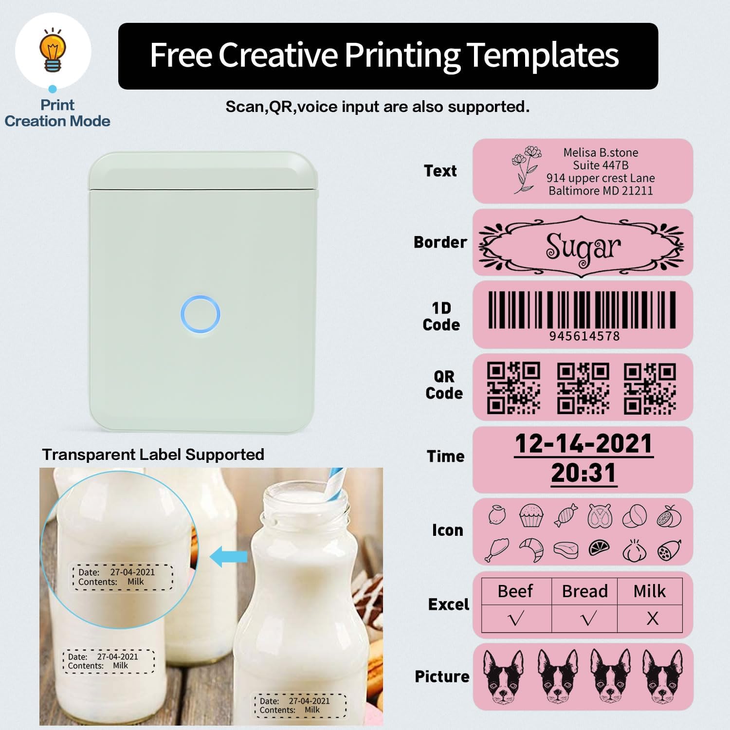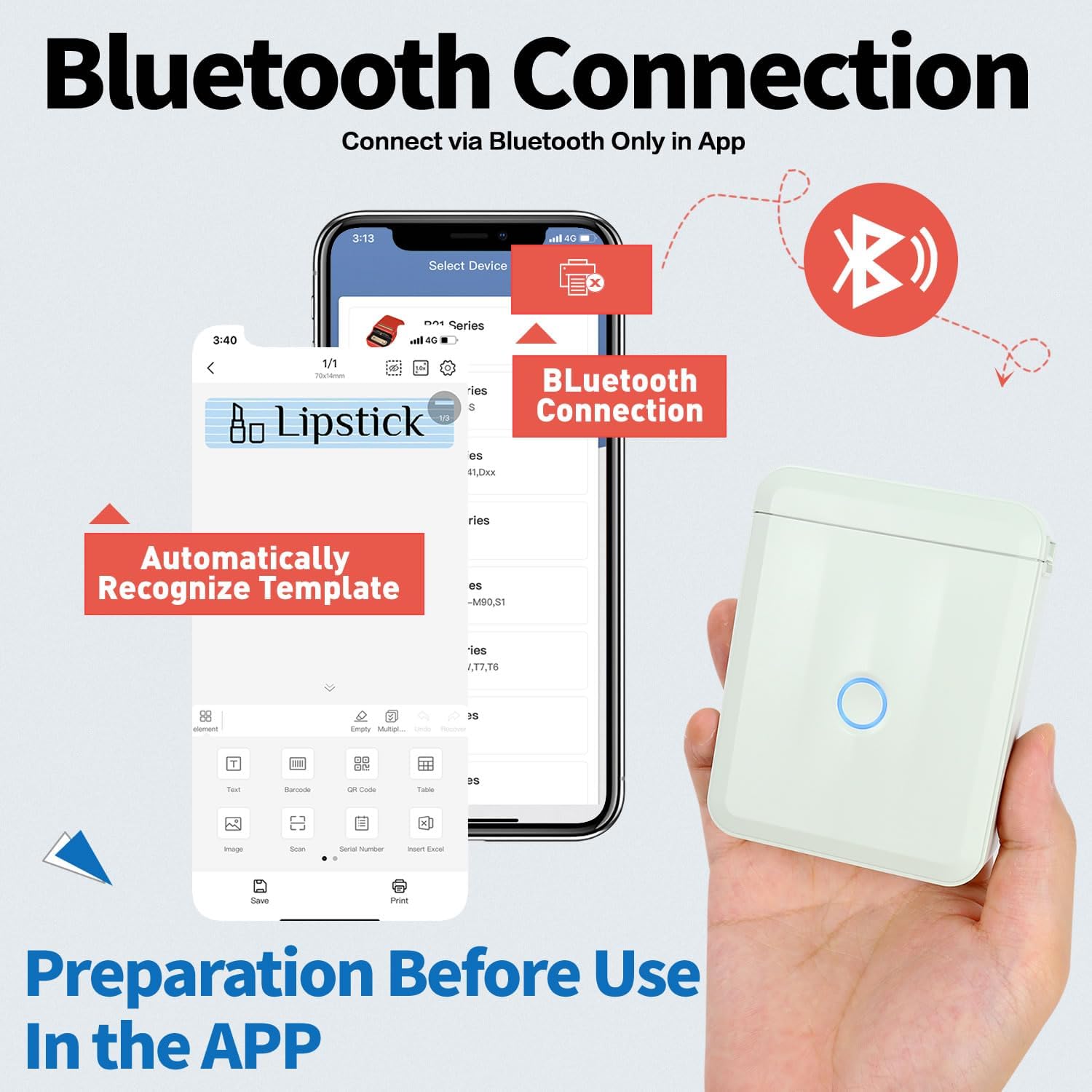 • 【Save Money】 - Bluetooth Label Printer with direct thermal technology, don't require ink, toner, or ribbons. This inkless label printer lower cost compared to inkjet printers. A variety of colors and sizes Labels to choose in our store.Operation video of D110 Label Maker:https://www.amazon.com/vdp/099b7070bbf14649b9d8c29bbaabfced