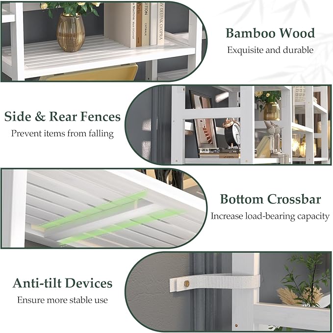 • Ultra-Sturdy Structure: Made of 100% thickened bamboo wood with exquisite craftsmanship and a sturdy structure for long-term use. The triple wide bookshelf is equipped with side and rear fences to prevent books or items from falling. Besides, there is a crossbar under each shelf to enhance the load-bearing capacity. For safety, you can secure the bamboo bookshelf to the wall using the included anti-tip device to prevent it from accidentally tipping over.