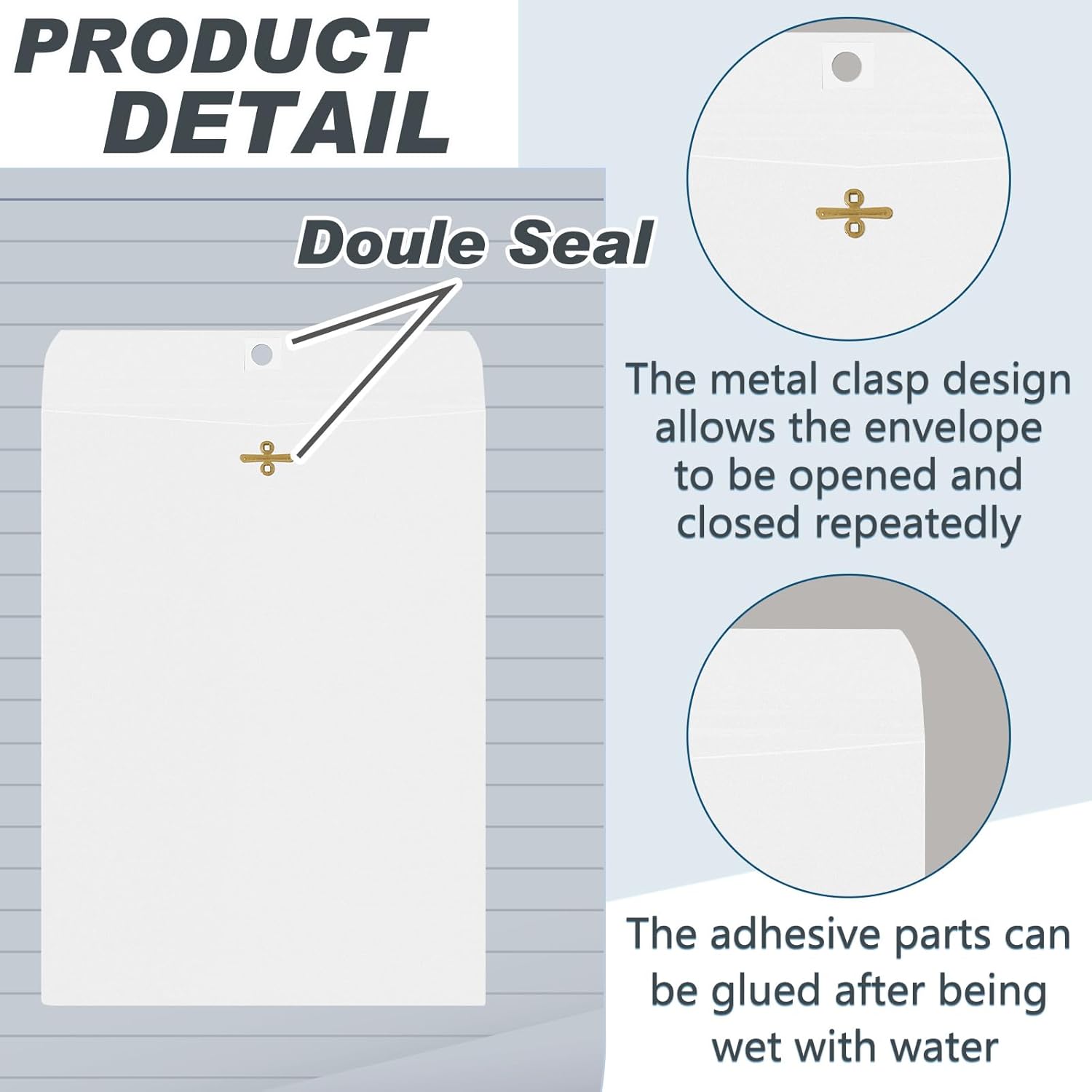 • Practical Sealing Mechanism: the metal clasps together with moisture activated gluing provide a secure grip and make the envelope easy to open and close repeatedly without damaging the content inside; The sealing mechanism ensures your documents stay safe and protected during handling