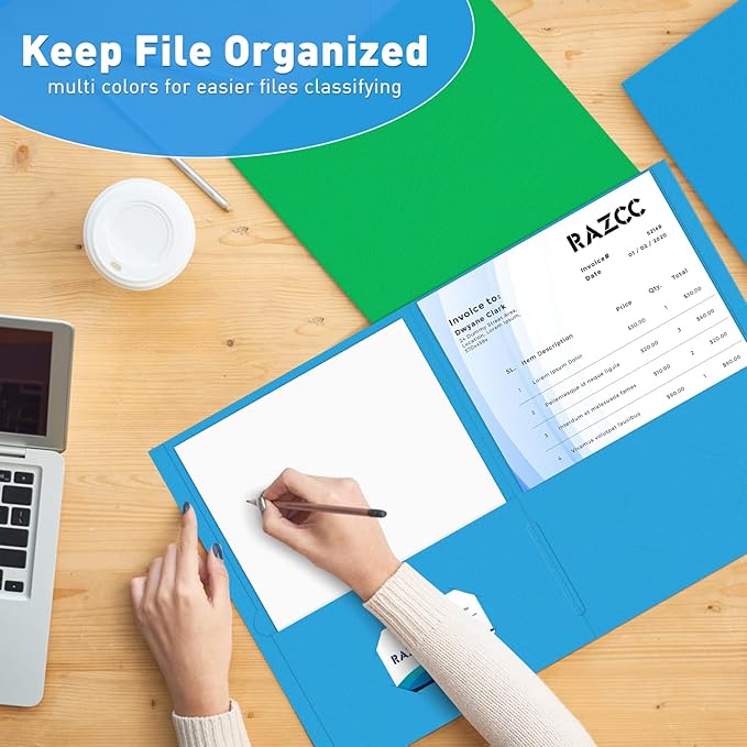 Two Pocket Folders, RAZCC 100 Pack File Folders with Pockets Fit Letter Size Paper, Thick Paper File Folder for School Office Business Home, Assorted 5 Colors