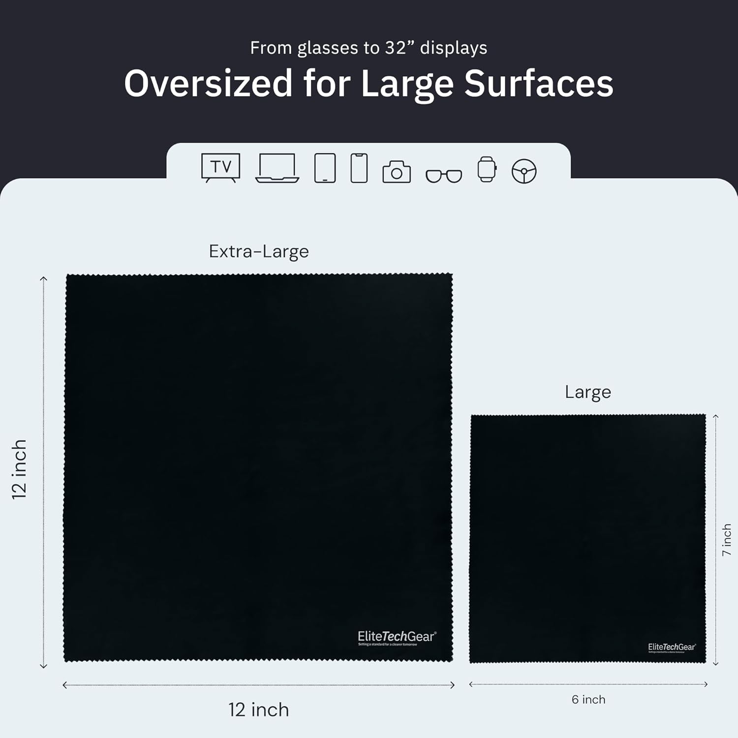 Elite Tech Gear Microfiber Cleaning Cloth for Glasses- 4-Pack, 12" x 12"- Durable Oversized Glasses Cleaning Cloth- Eyeglass Cleaning Wipes for Lenses, Electronics- High Tech Quality Material (Black)