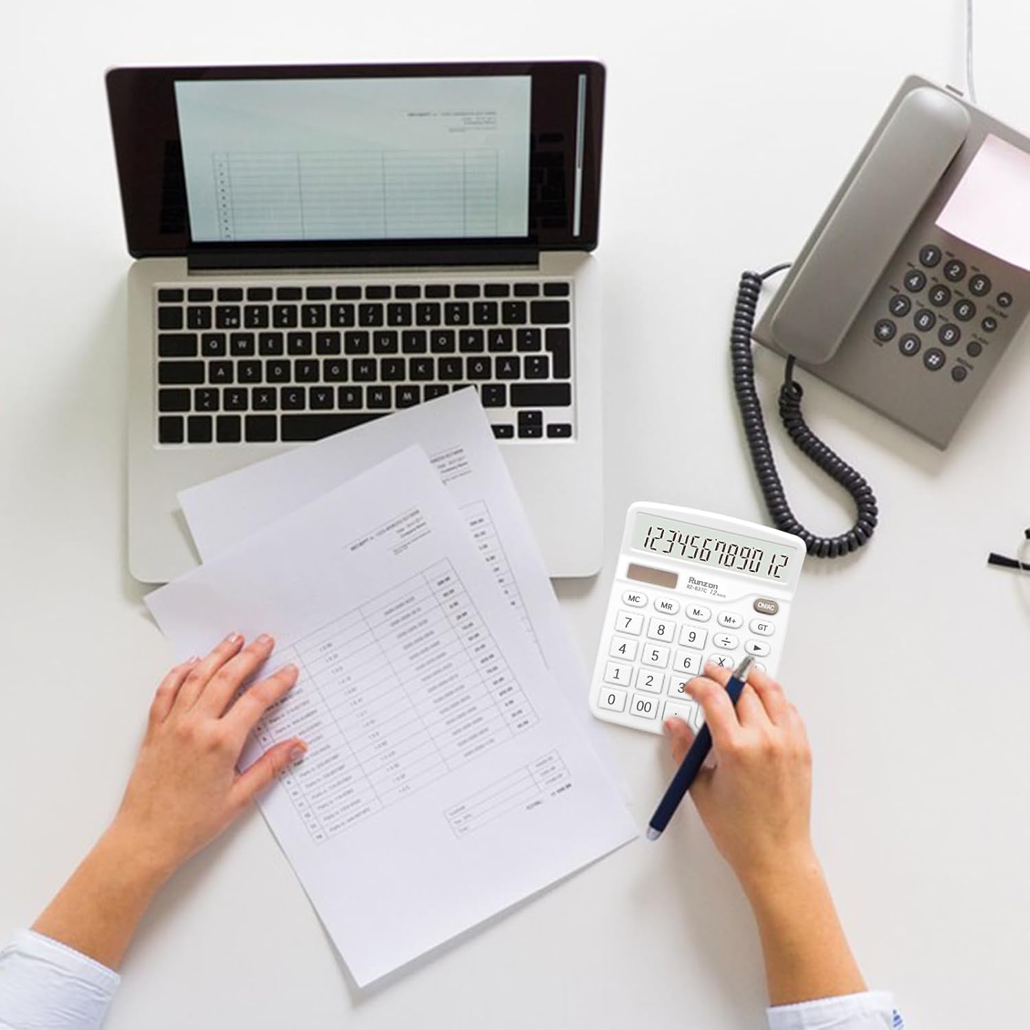 • Large Display, White desktop calculator 12 digit with large LCD display and sensitive buttons. Your calculation process will be faster and smoother with this calculator’s responsive buttons, makes it easy to read from afar, and it’s aesthetically pleasing.