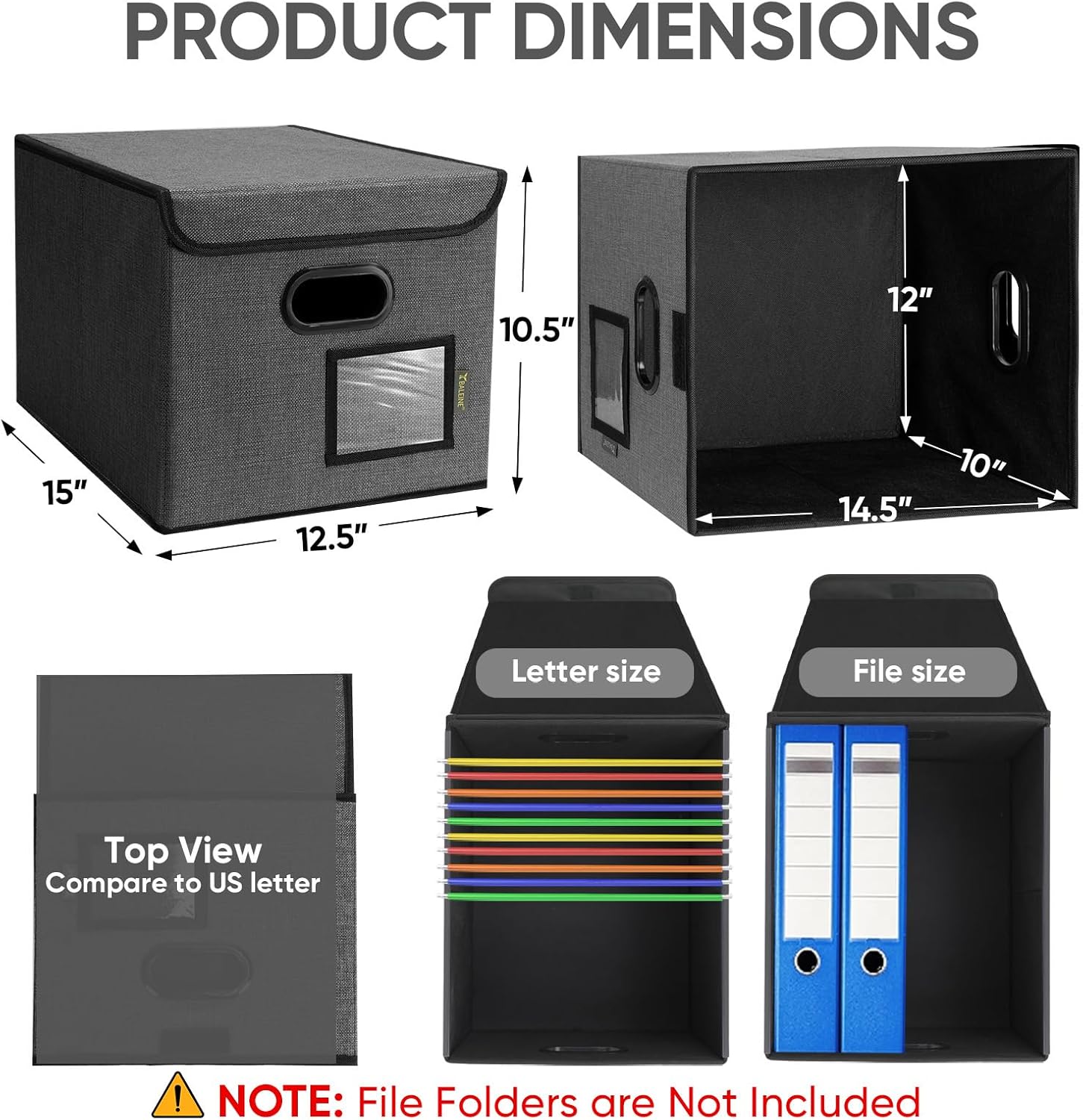• [MULTI-PURPOSE USAGE] Measuring 15x12.5x10.5 inches, our file folder box is perfect for organizing files, bills, and papers in your home or office. It can also be used to store school supplies. Its versatility makes it practical for various needs.