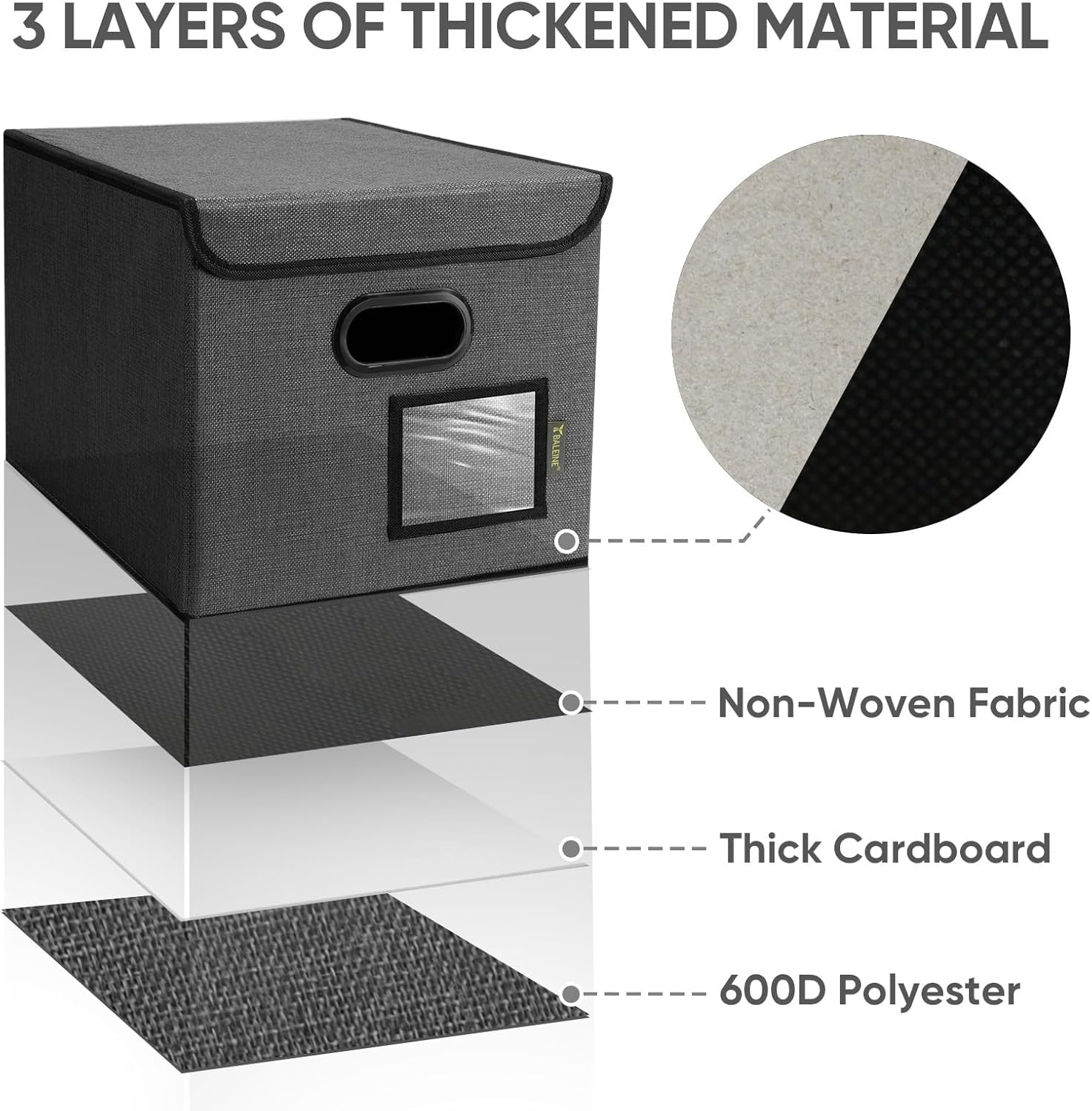 • [DURABLE MATERIAL] The outer layer of our filing box is crafted from high-quality polyester fabric and reinforced with thick cardboard in the middle. This construction ensures that the box maintains its shape and provides better bearing capacity for important documents and files. Its textured appearance can also serve as a stylish decorative element in any office or home.