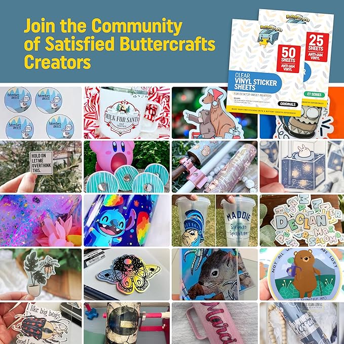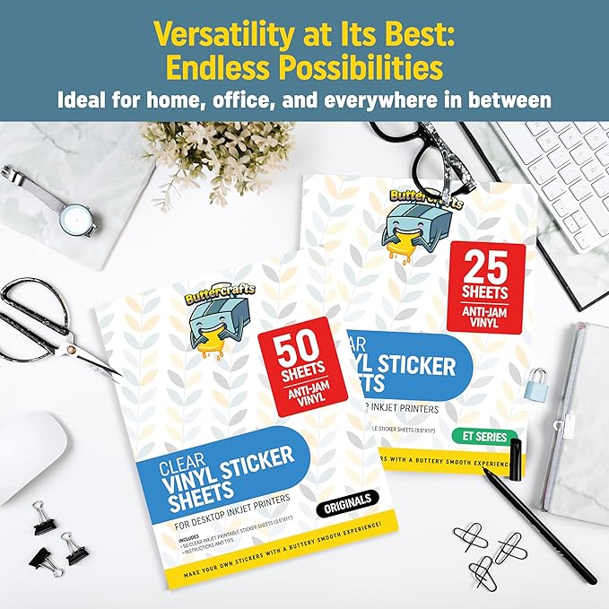 Clear Printable Vinyl for Inkjet Printer - For Epson - (Clear Sticker Paper | Waterproof | 50 Sheets) - Transparent Inkjet Printable Vinyl Sticker Paper Avoid Jams for Printers