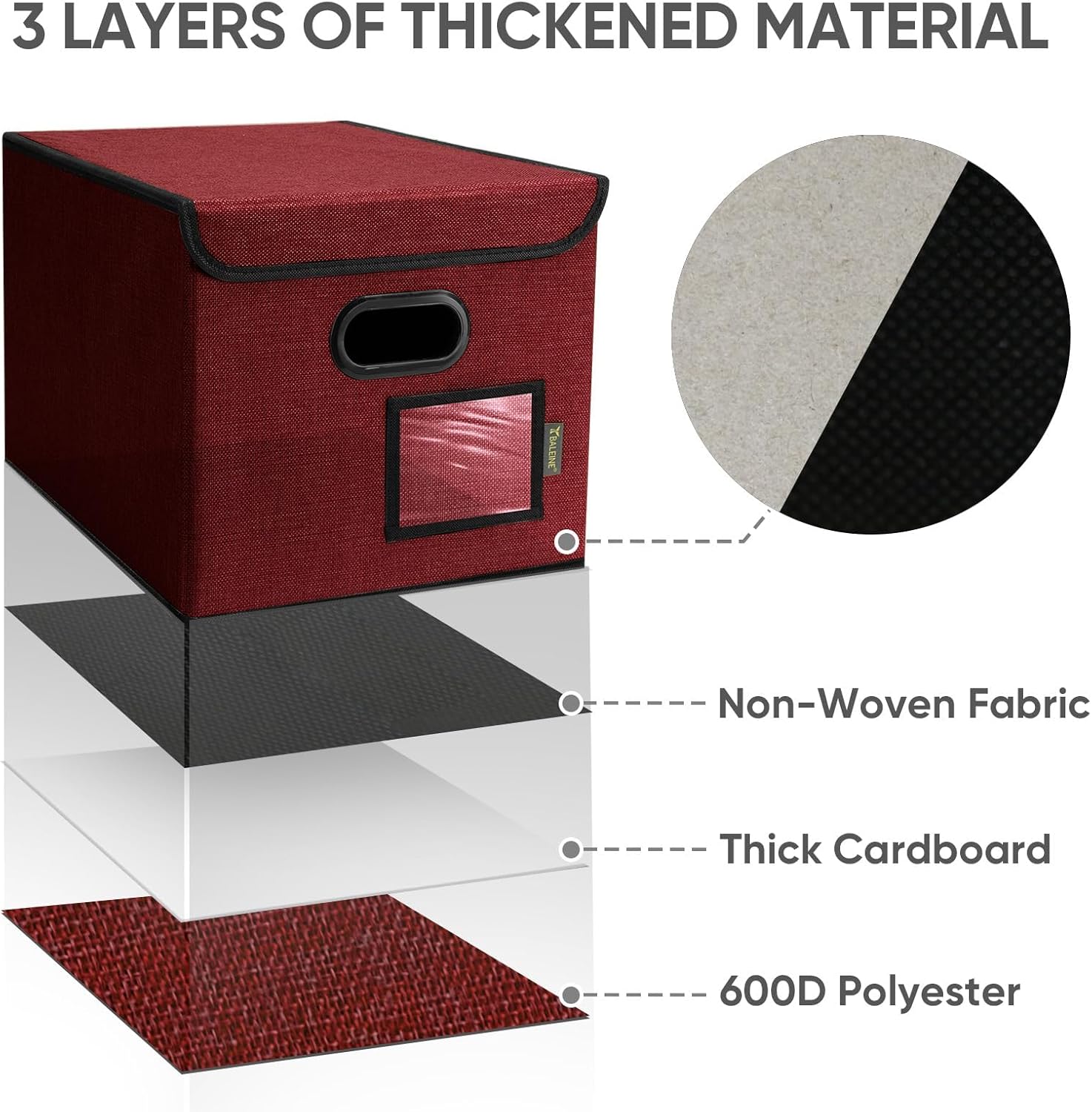 • [DURABLE MATERIAL] The outer layer of our filing box is crafted from high-quality polyester fabric and reinforced with thick cardboard in the middle. This construction ensures that the box maintains its shape and provides better bearing capacity for important documents and files. Its textured appearance can also serve as a stylish decorative element in any office or home.
