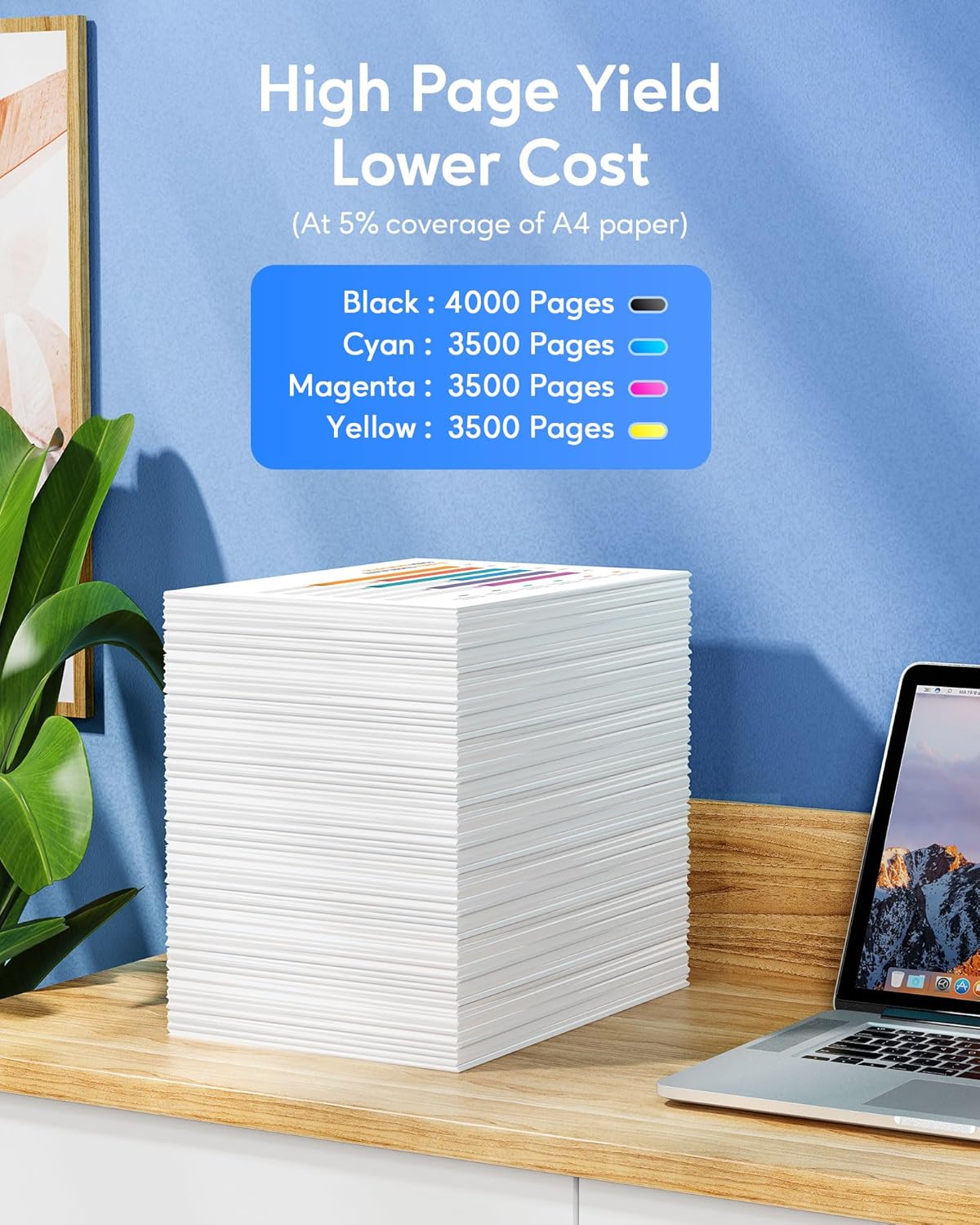 • 📃High Page Yield: Up to 4,000 Pages per Black cartridge, 3,500 Pages per Cyan/Yellow/Magenta Cartridge(5% coverage at A4 paper)