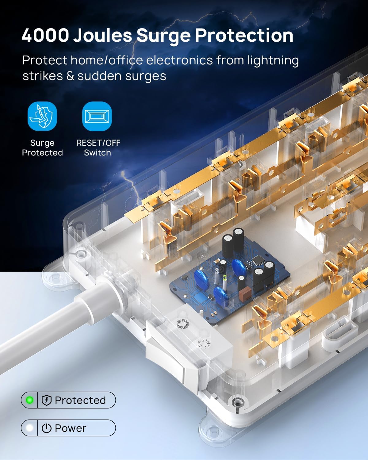 • 【Safety Certified】This power strip with usb ports is ETL certified and combines 4000J surge protection, overload protection, overcurrent protection, short circuit protection, and a 1382℉ fireproof shell to provide comprehensive safety protection for your tablet, TV, mobile phone, and other electronic devices against potentially damaging power disturbances