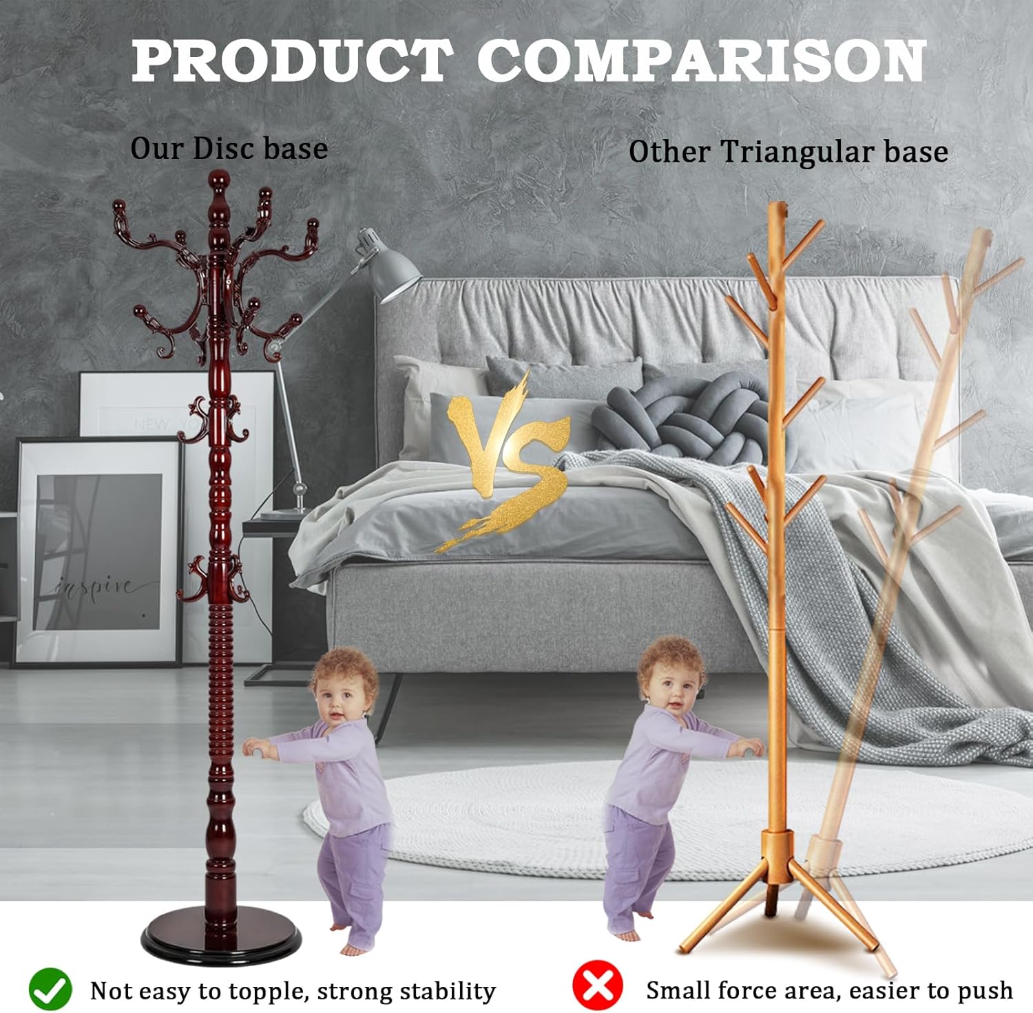 • 【STABILITY & STURDY】The enlarged disc base of this tree Coat Rack Stand and does not shake (base: 14.56 inches;), It is very strong and stable enough to support about 120 pounds of weight, Effectively supporting and hanging multiple heavy clothes, such as jackets, jackets, and cotton clothes, with excellent load-bearing capacity, even if hanging heavy clothes on one side, they will not topple.