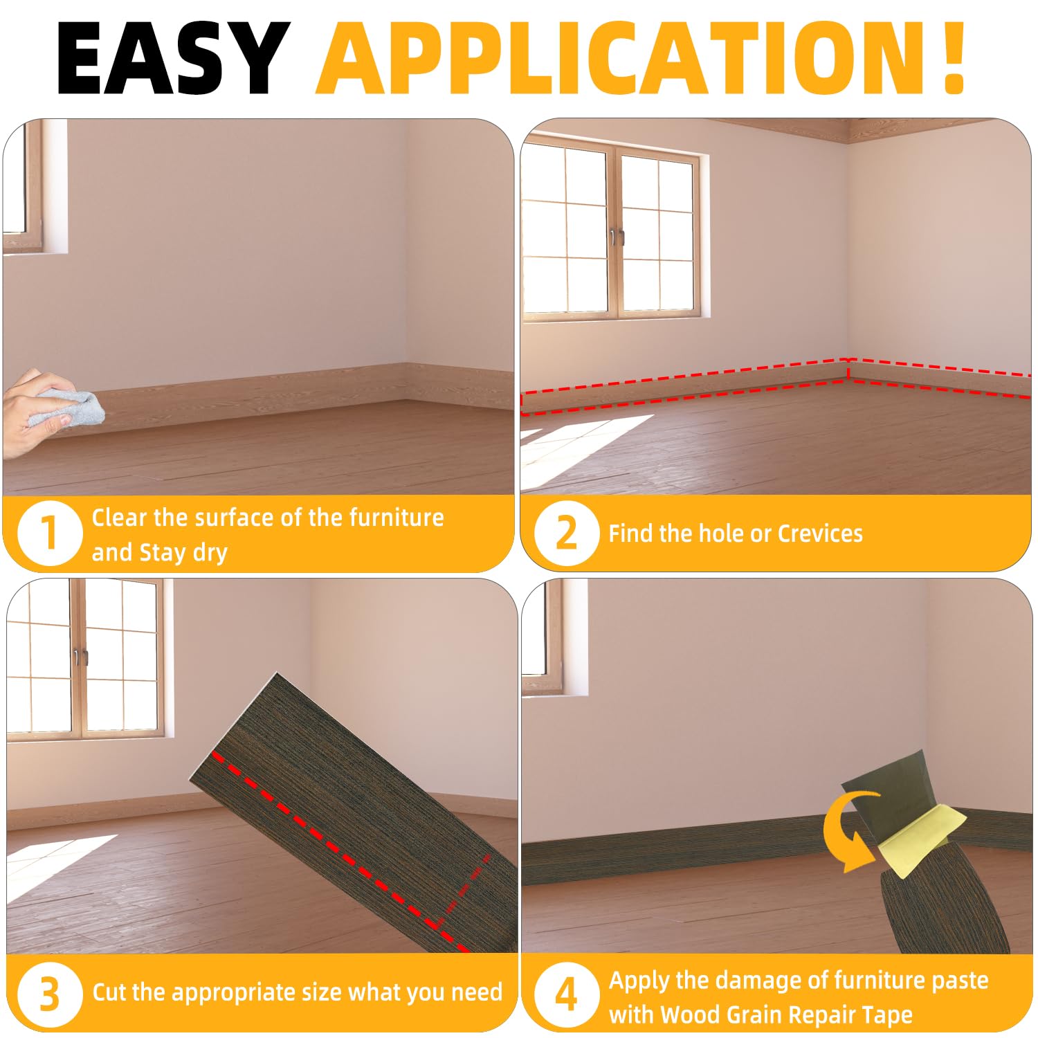 • High Quality - The Wood Grain Repair Tape is made of high quality Self Adhesive, which is durable and elastic, with a smooth surface and not easy to be dirty.When you repair Tables, Chairs, Baseboards, Doors, Windows, Floors, All Kinds of Furniture Renovation, Wood Grain Repair Tape will be your first choice