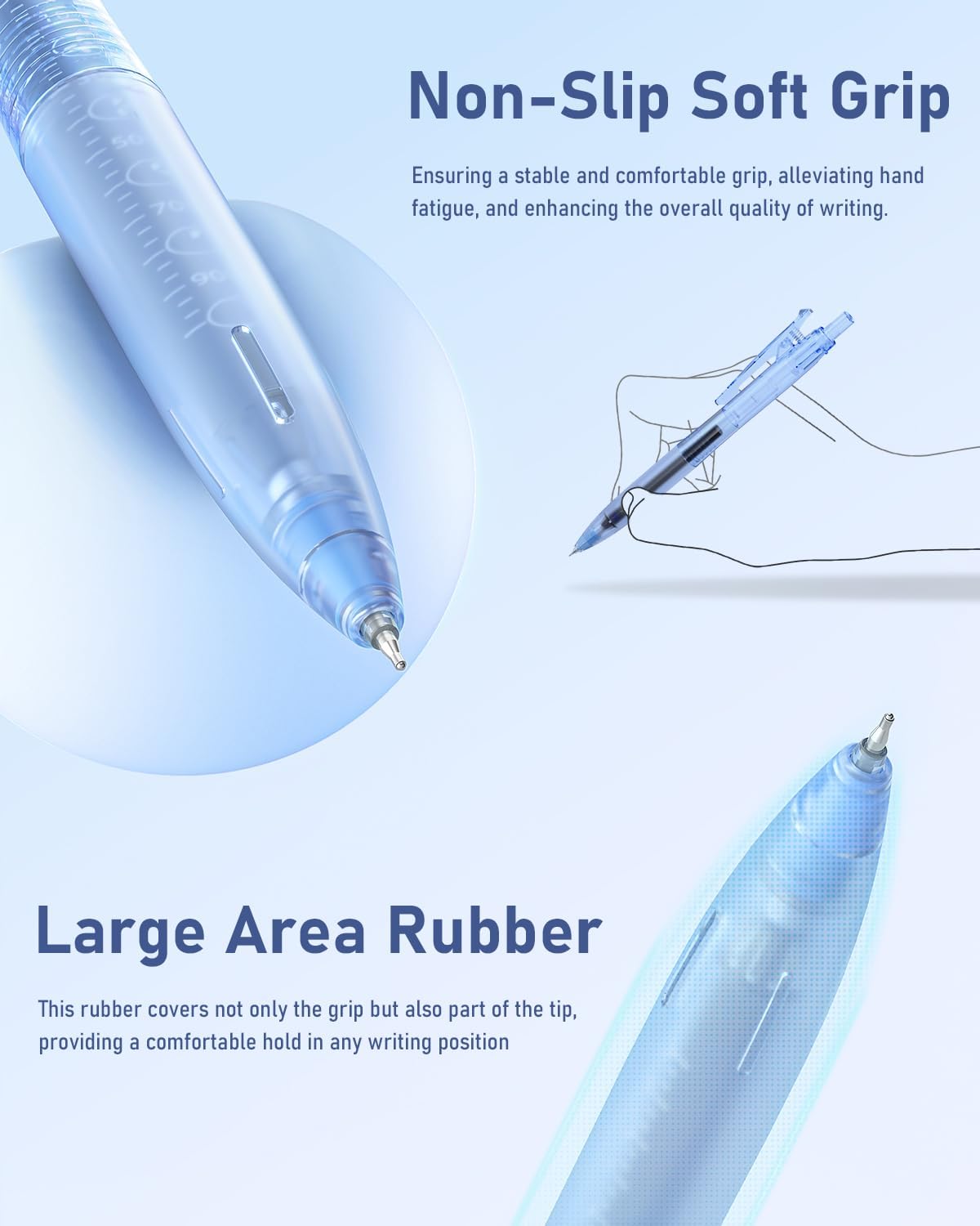 • Comfortable Rubber Grip: These gel pens set with soft ergonomic rubber grip is comfortable and non-slip, it easy to hold and reduces hand fatigue and improves writing control, especially during extended writing sessions, giving you good writing and drawing experience
