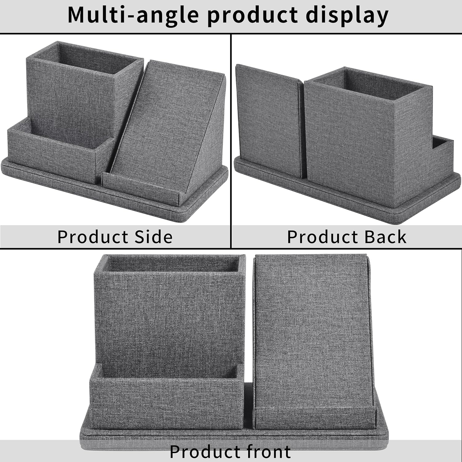 Multi-Function Pen/Pencil Holder-Linen Leathe Excellent Cell Phone Touch Screen Solution Holde-Business Card Holder/Sticky Note Tray,Desk Organizer for Office Supplies,Desktop Caddy,Grey