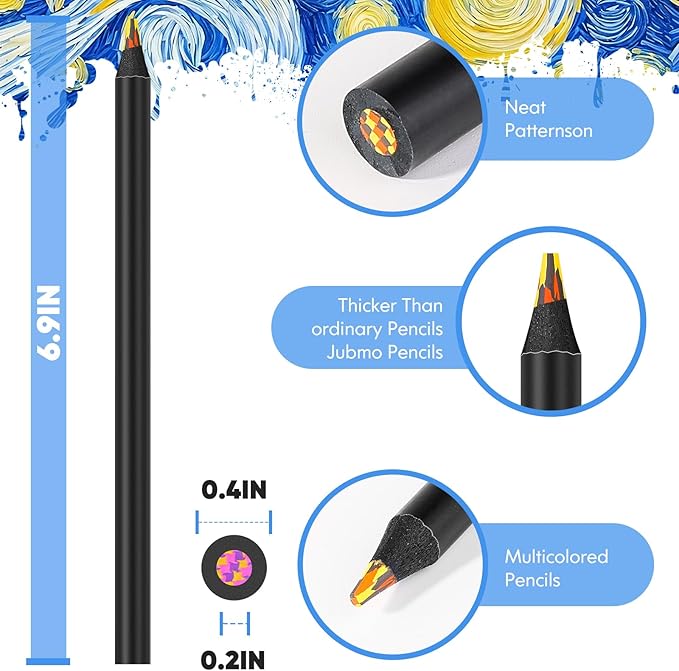 • For All Creatives: This collection of 24 rainbow pencils isn't just an art supply; it's an invitation to creativity. Designed to inspire individuals of various skill levels and ages, including adults, beginners, and seasoned artists, these pencils spark the flame of imagination. Perfect for kindling creativity in the young and rekindling inspiration in the experienced, they prove that artistic exploration knows no bounds.