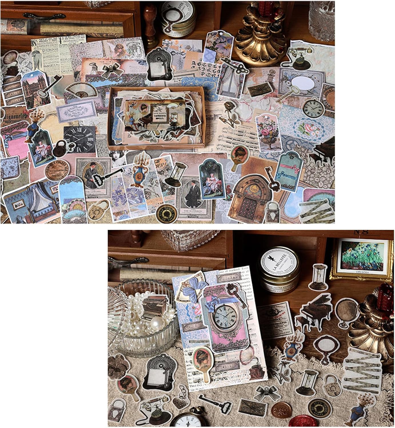 • Design: 80pcs washi stickers with 40 designs, 2 pieces of each; 120pcs vintage printing papers with 60 designs , 2 pieces of each.