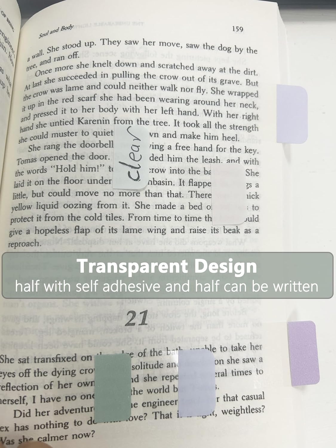• Safety Material: the book tabs made of PET material and special adhesive, waterproof, non-toxic, no odor, smooth writing; self adhesive part is transparent