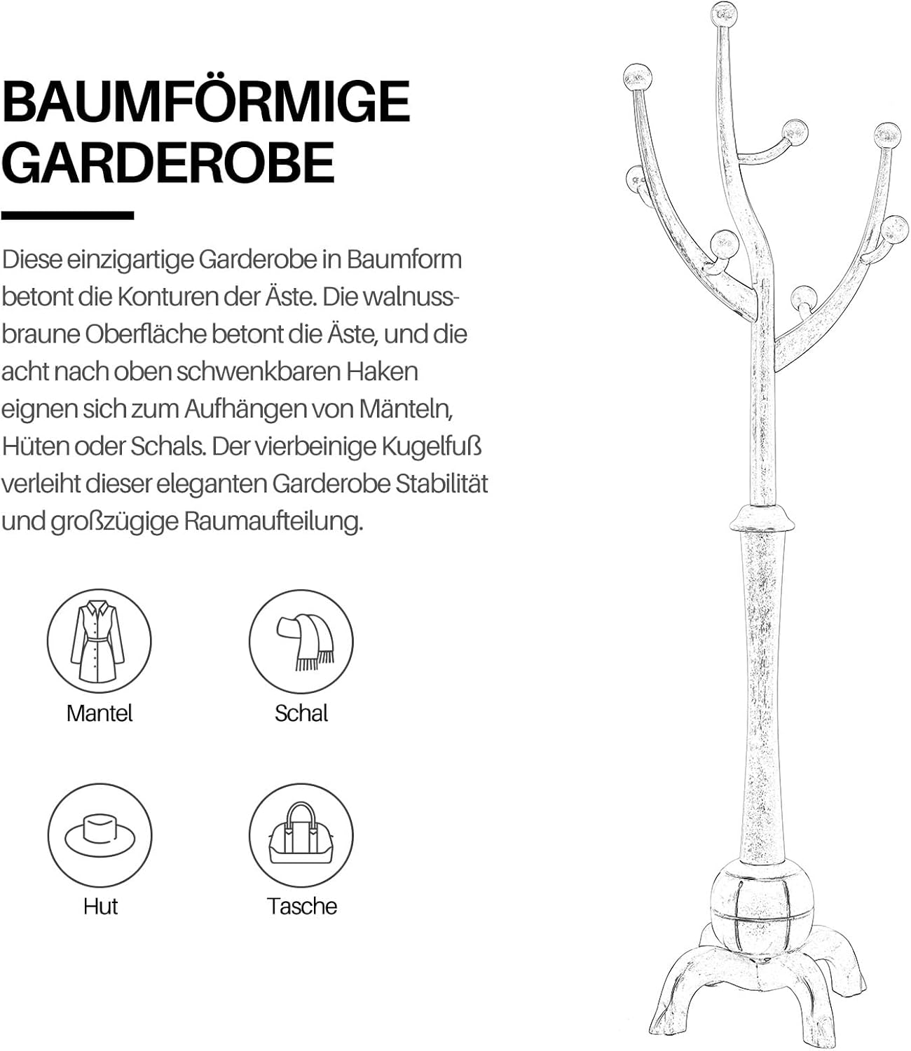 • 【Premium Material】: This tree coat rack is made from high-quality rubber wood logs, and does not contain artificial synthetic boards. The wood material exhibits an attractive grain and a walnut brown finish that makes it a lovely addition to any home