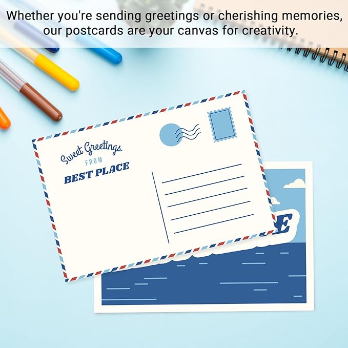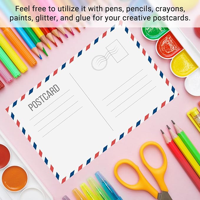 • Smooth Writing: Explore the endless possibilities our postcards offer for self-expression. The smooth texture of the paper allows your pen to glide effortlessly, capturing your thoughts and illustrations with unmatched precision. Whether you choose to use pens, pencils, crayons, printers,or even paint and glitter, these postcards offer an elegant canvas for your words and creative designs.