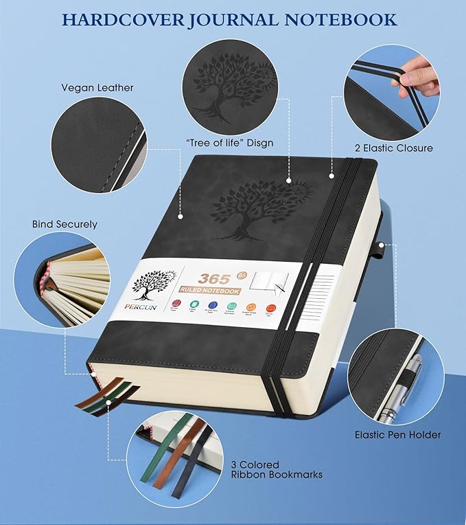 • 【365 Pages Premium Thick Paper】: Our PERCUN lined journal notebook is made of 365 pages high-quality 100Gsm thick ruled pager with an acid-free light Ivory paper that is thicker than normal. This premium quality paper will not cause bleeding, ghosting or smudging and is suitable for most types of pens,provides ample space for journaling, note-taking, and creative writing. The line spacing is 7mm, making it easy to write legibly and neatly.