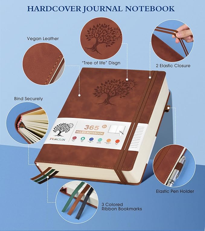 • 【365 Pages Premium Thick Lined Paper】: Our PERCUN lined journal notebook is made of 365 pages high-quality 100Gsm thick ruled pager with an acid-free light Ivory paper that is thicker than normal. This premium quality paper will not cause bleeding, ghosting or smudging and is suitable for most types of pens,provides ample space for journaling, note-taking, and creative writing. The line spacing is 7mm, making it easy to write legibly and neatly.