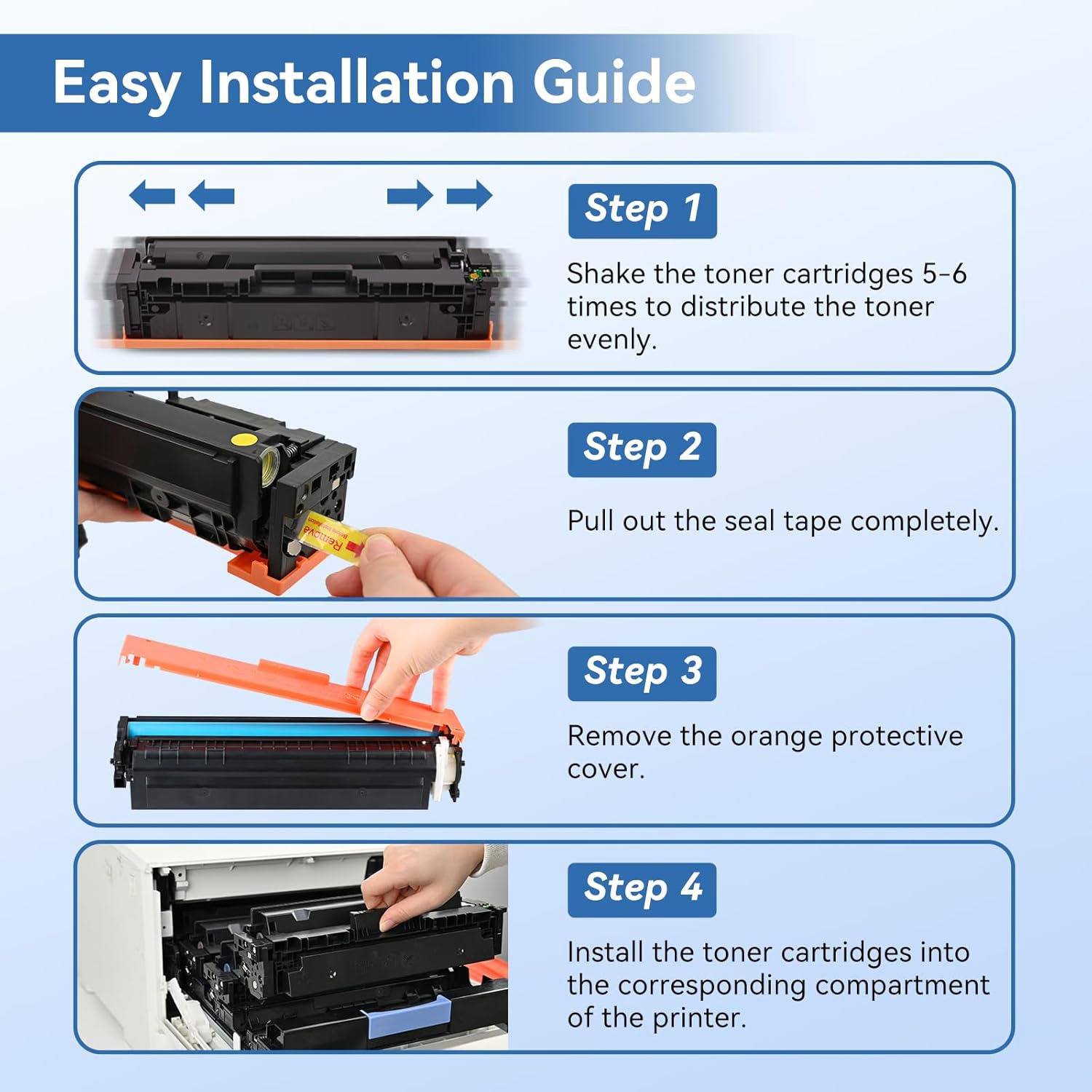 • Easy Installation: 206A 206X Toner Cartridges 4 Pack come with chips, which are designed for easy installation and better replacement compatible with M255, MFP M282 and MFP M283 series printers, eliminating the need to transfer chips from old cartridges