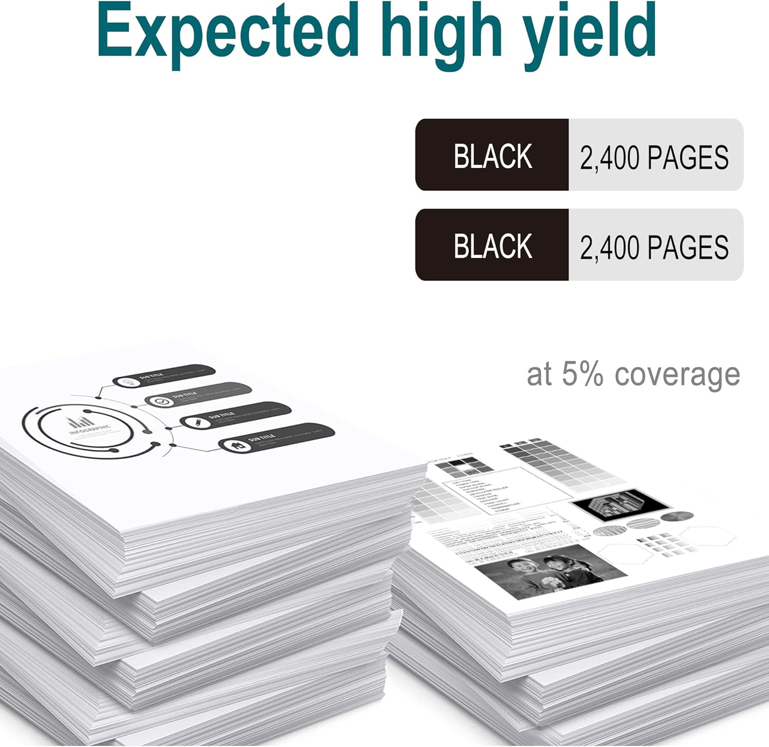 • High Page Yield: Up to 2400 pages per black toner cartridge (at 5% coverage may vary by type of use)