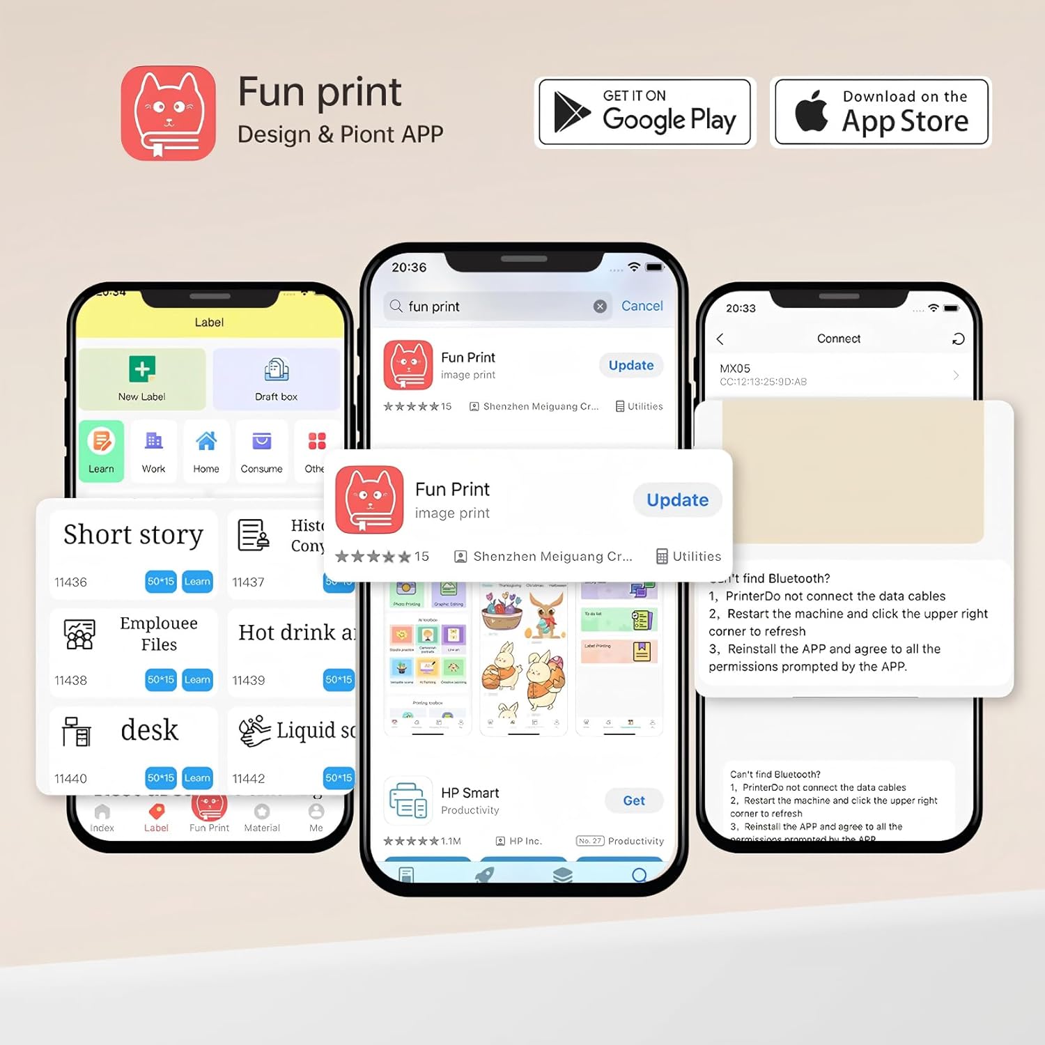 • [203dpi Clear Printing] Cabaro Mini Sticker Printer has a cute look and a small size, specially designed for kids. More importantly, compared with similar mini printer, it has clear printing and high-definition imaging, which protects children's eyes while learning and playing