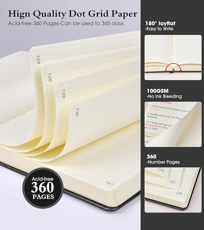 • 【Great Use】Perfect as a bullet journaling, planner, writing journal, daily journal personal writing journal, Drawing, Sketching,travel journals,business notebooks,college course notebooks,daily diary, and more.It's a meaningful gift choice for anyone, from students and business executives to writers and artists.