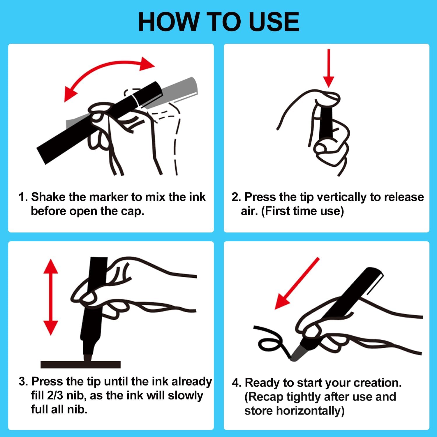 • EASY TO USE - These car markers are easy to use, shake the marker before use and press the nib up and down for several times until it fill with ink. Please recap after use and store horizontally.