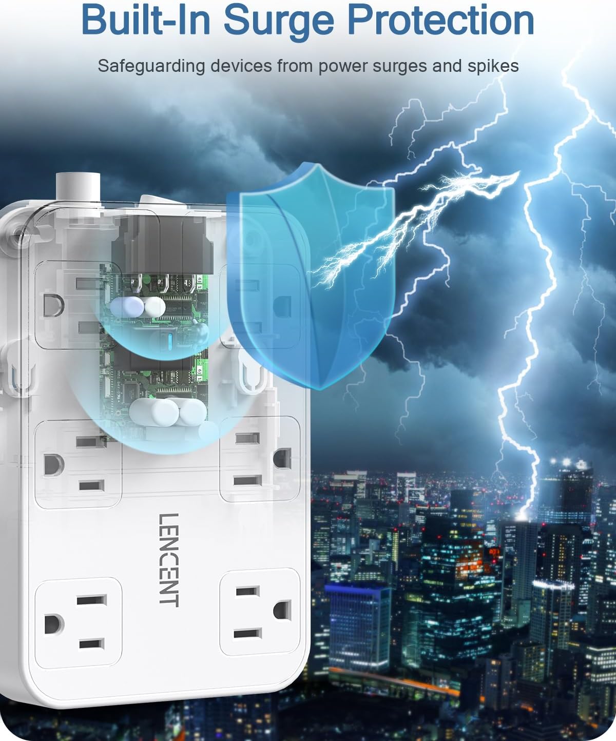• Superior Safety: 1050J surge protector and 13A integrated circuit breaker with FCC certificated and fire-resistance PC shell, protect electronic product from surge, spike and overload. The reliable overload switch will trip off automatically to prevent your devices and your home from over-voltage, overload, over-current, short-circuit and etc. Polarized plug provides a measure of safety for the appliances and house wiring to be aligned in terms of polarity. It is perfect for older houses.