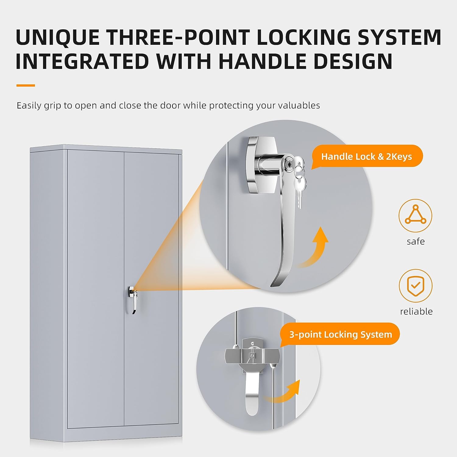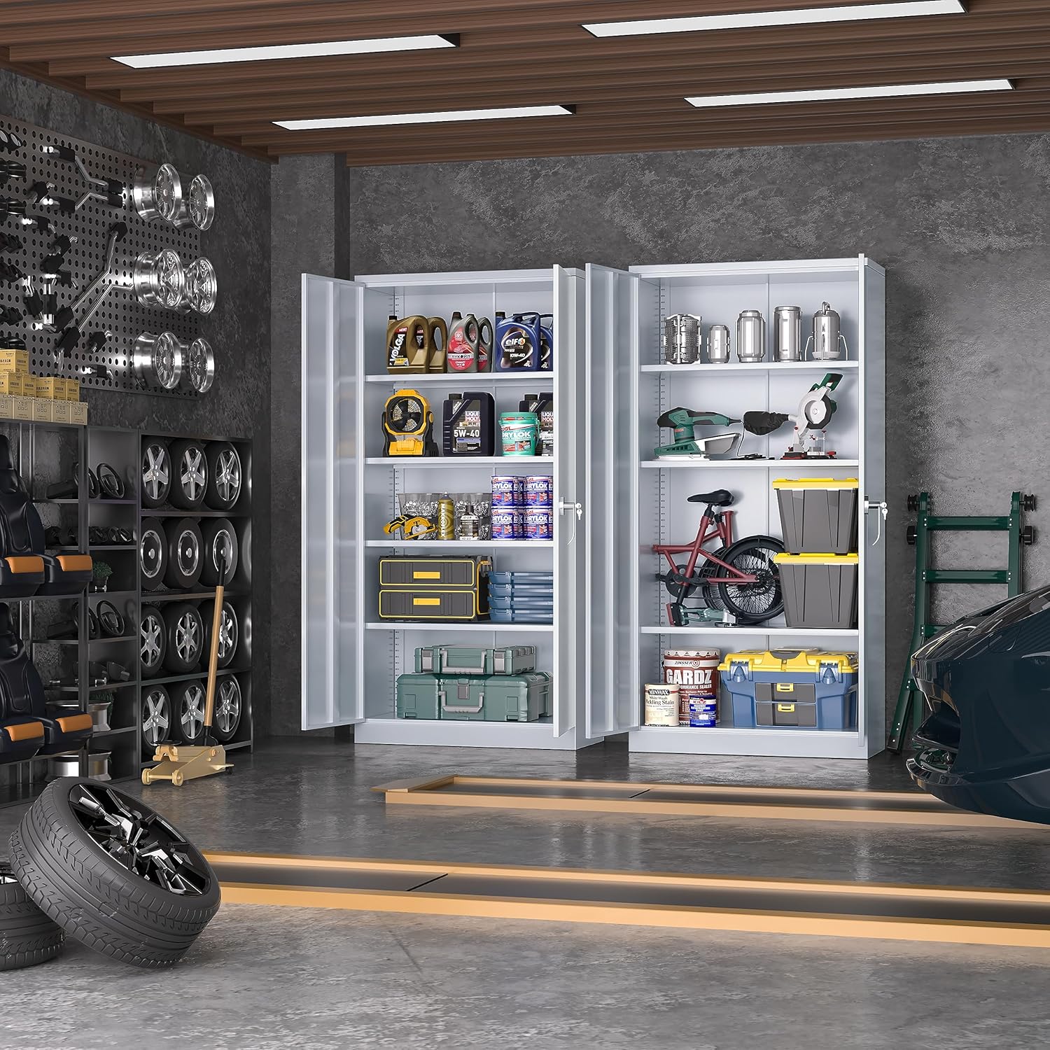 • 『4 Adjustable Shelves』: Tall storage cabinets with 4 adjustable shelves and 2 door to accommodate items of all sizes. Garage cabinets and storage system with lock picking to secure valuables, with two keys.